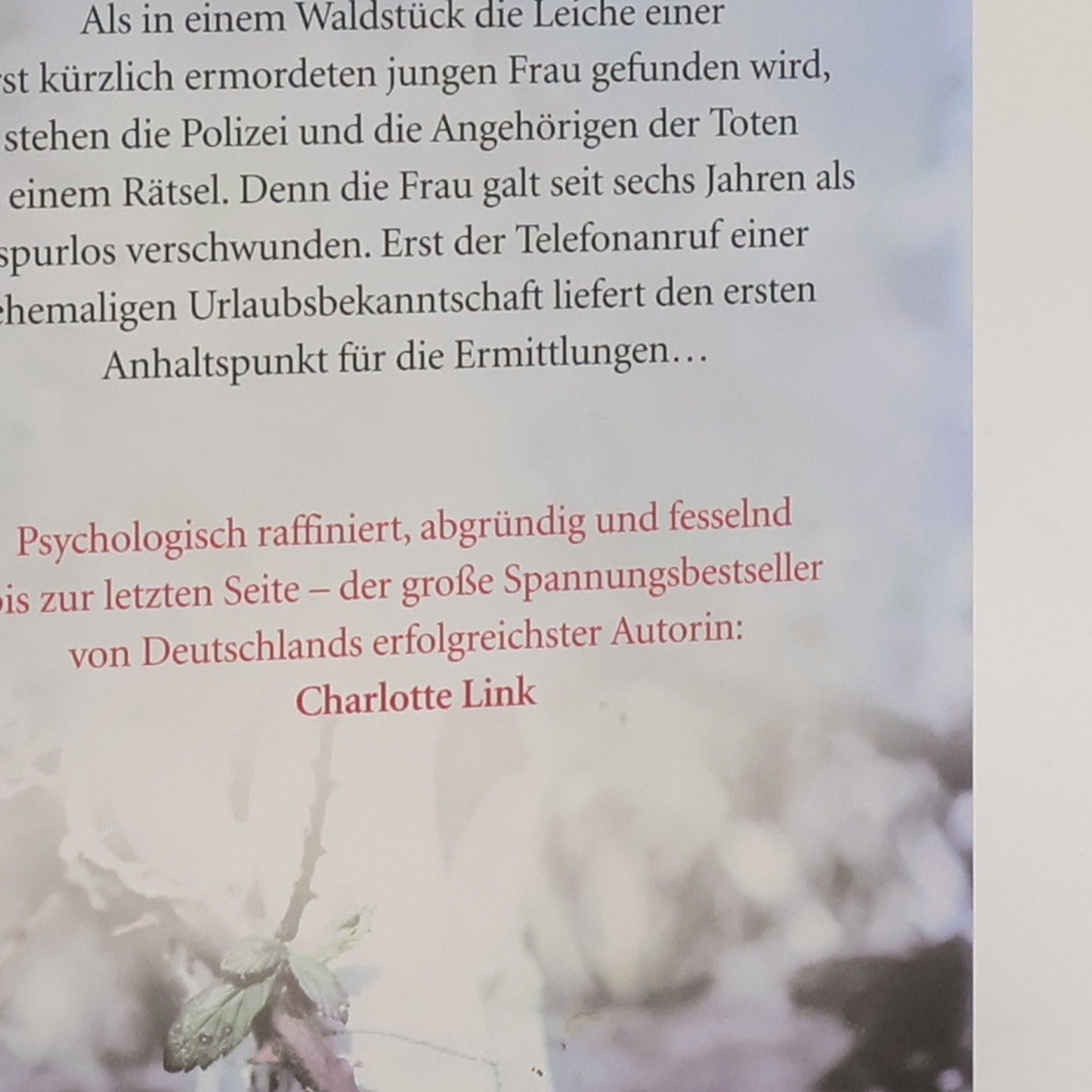 Wenn die Liebe zur Gefahr wird, brauchst du all deine Kraft und Entschlossenheit, um dein Leben zu retten … Als in einem Waldstück die Leiche einer erst kürzlich ermordeten jungen Frau gefunden wird, stehen die Polizei und die Angehörigen vor einem Rätsel. Denn die Frau galt seit sechs Jahren als spurlos verschwunden. Erst der Telefonanruf einer ehemaligen Urlaubsbekanntschaft liefert den ersten Anhaltspunkt für die Ermittlungen und führt zu einer geheimnisvollen Frau, bei der alle Fäden scheinbar zusammenlaufen … Millionen Fans sind von den fesselnden Krimis von Charlotte Link begeistert. Dunkle Geheimnisse und spannende Mordfälle erwarten Sie. Alle Bücher können unabhängig voneinander gelesen werden.