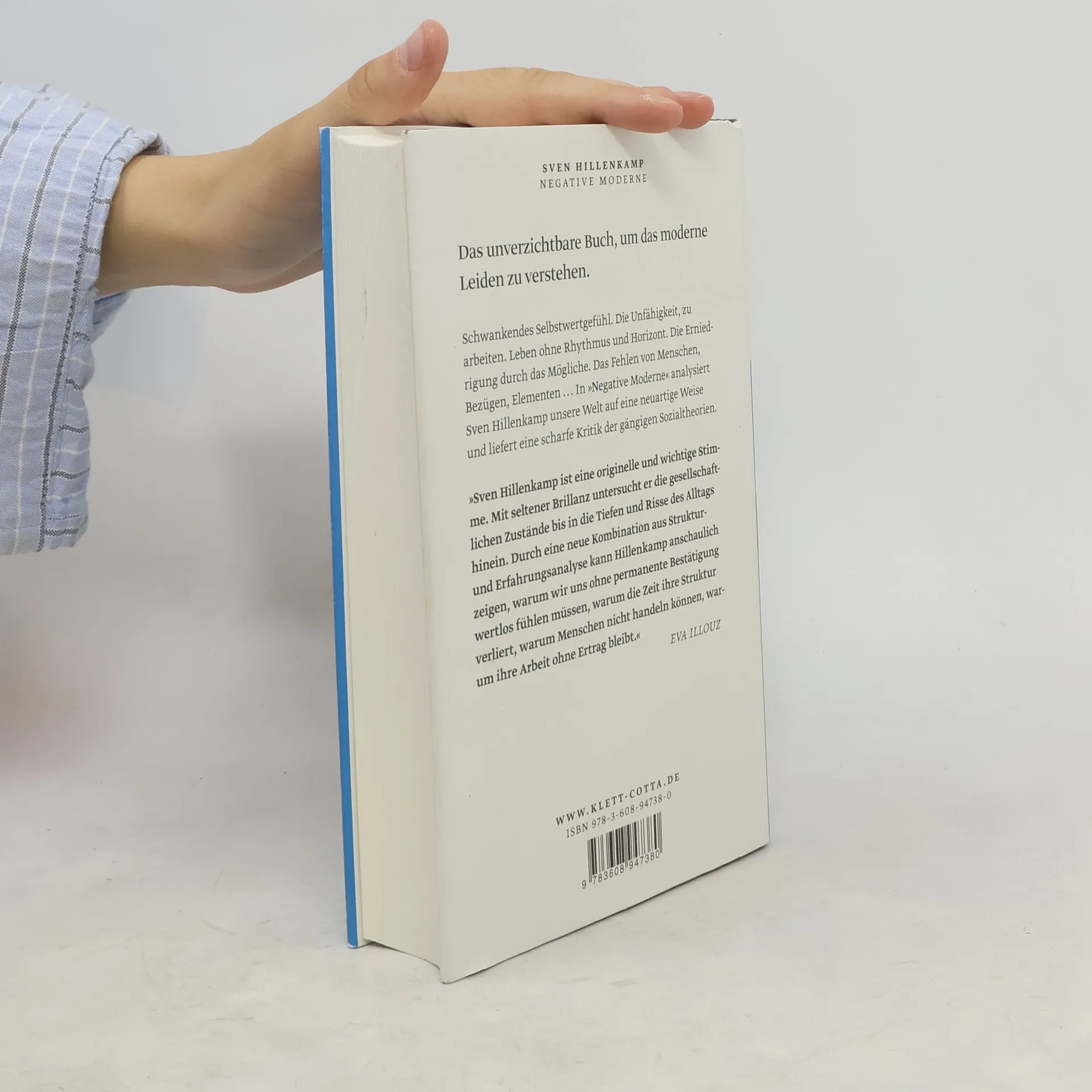 Das unverzichtbare Buch, um das moderne Leiden zu verstehen. Schwankendes Selbstwertgefühl. Die Unfähigkeit, zu arbeiten. Leben ohne Rhythmus und Horizont. Die Erniedrigung durch das Mögliche. Das Fehlen von Menschen, Bezügen, Elementen ... In »Negative Moderne« analysiert Sven Hillenkamp die Schattenseiten der Moderne und liefert außerdem eine scharfe Kritik der gängigen Sozialtheorien. »Sven Hillenkamp ist eine originelle und wichtige Stimme. Mit seltener Brillianz untersucht er die gesellschaftlichen Zustände bis in die Tiefen und Risse des Alltags hinein. Durch eine neue Kombination aus Struktur- und Erfahrungsanalyse kann Hillenkamp anschaulich zeigen, warum wir uns ohne permanente Bestätigung wertlos fühlen müssen, warum die Zeit ihre Struktur verliert, warum Menschen nicht handeln können, warum ihre Arbeit ohne Ertrag bleibt.« Eva Illouz