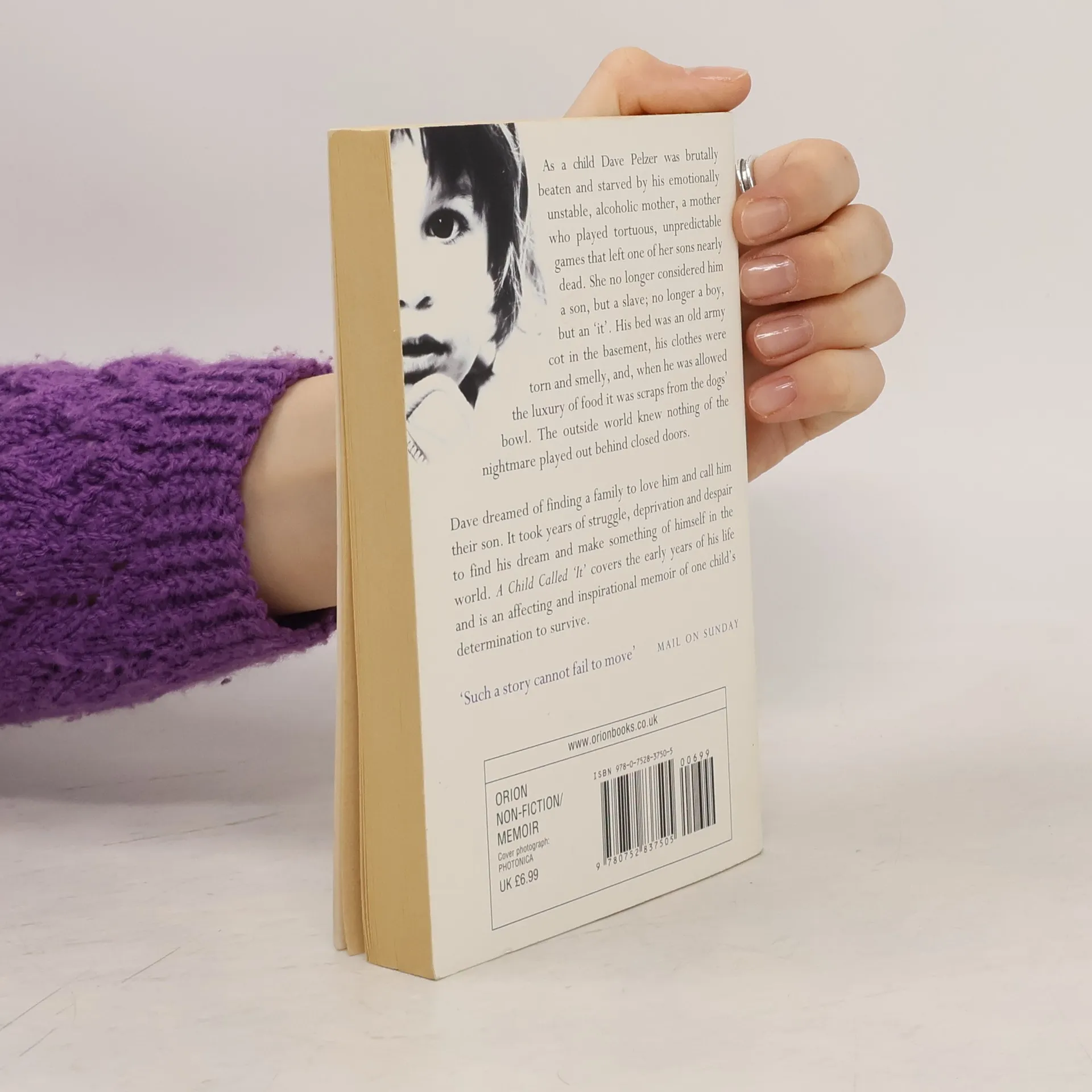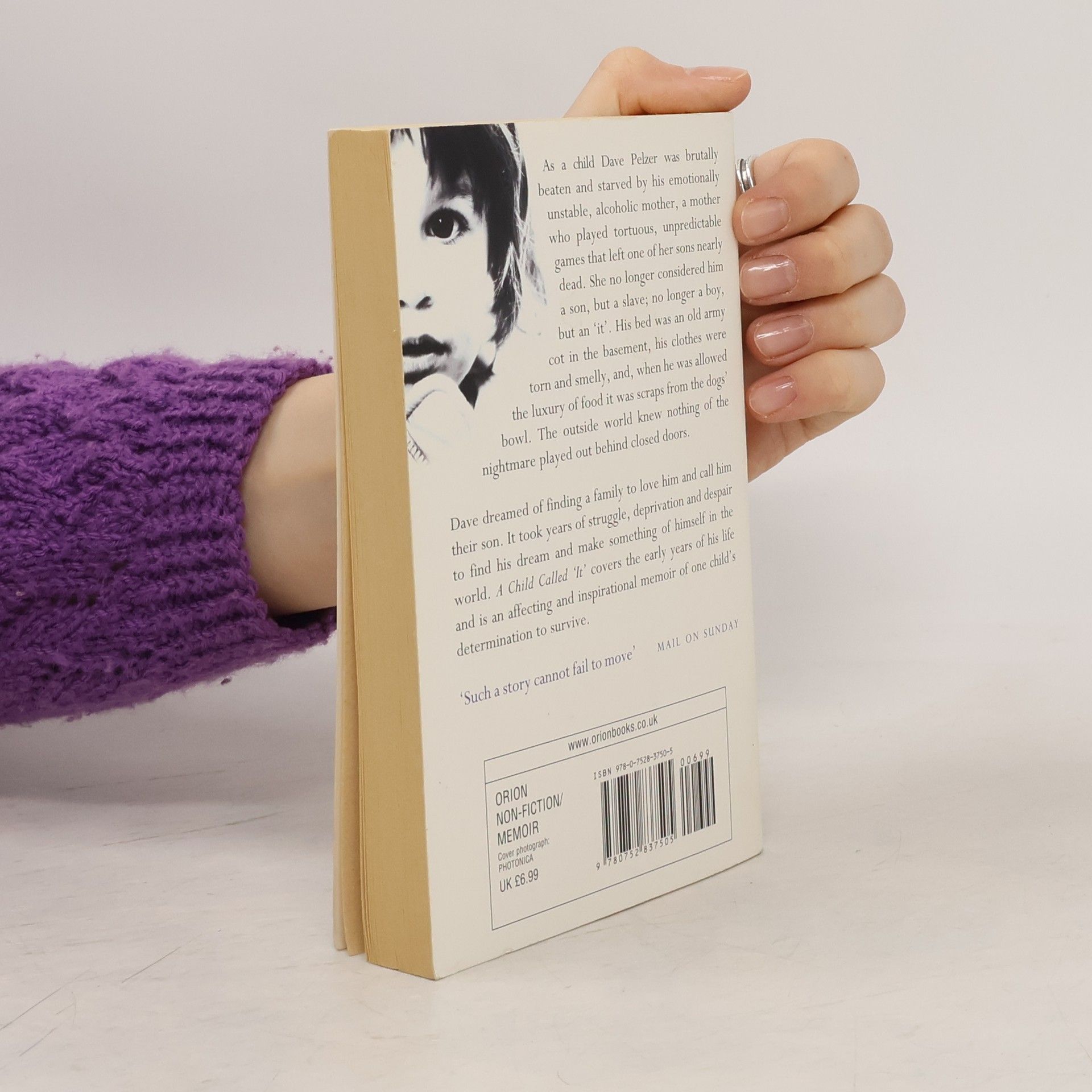Dave Pelzer was brutally beaten and starved by his emotionally unstable, alcoholic mother, a mother who played tortuous, unpredictable games - games that left one of her three sons nearly dead. She no longer considered Dave a son, but a slave; no longer a boy, but an 'it'. His bed was an old army cot in the basement, his clothes were torn and smelly, and when he was allowed the luxury of food it was scraps from the dog's bowl. The outside world knew nothing of the nightmare played out behind closed doors. But throughout Dave kept alive dreams of finding a family to love him. This book covers the early years of his life and is an affecting and inspirational book of the horrors of child abuse and the steadfast determination of one child to survive.