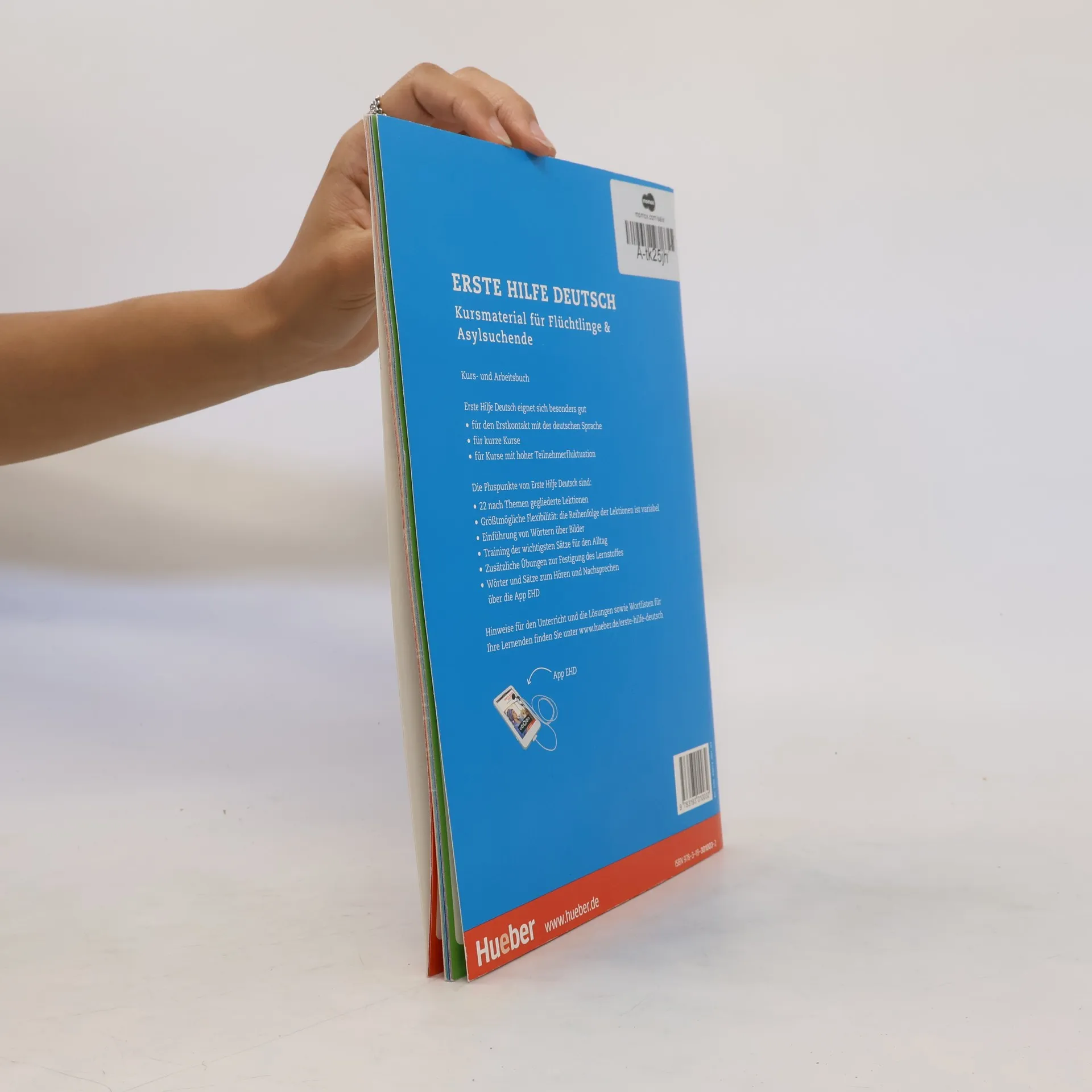 Niveau A1.1 Zielgruppe: Ein erster Einstieg in die deutsche Sprache für erwachsene Geflüchtete und Asylsuchende Sprachliche Erstorientierung für Geflüchtete - Unterrichtsmaterial speziell für neu ankommende Geflüchtete und Asylsuchende - Wortschatz und erste Sätze zu allen relevanten Bereichen wie z. B. Begrüßung und Verabschiedung, Herkunft, Zahlen, Uhrzeit, Wochentage und Monate, Tagesablauf, Familie und Familienstand, Beruf und Einkaufen - sehr klar strukturiertes und einfach zu handhabendes Material - ideal auch für (ehrenamtliche) Kursleitende mit wenig Unterrichtserfahrung - ansprechend und großzügig bebildert - kurze, nach Themen gegliederte Lektionen à einer Doppelseite - Lektionen ohne Progression: Einstieg in den Kurs ist jederzeit möglich und das Material flexibel einsetzbar - ideal für Kurse mit hoher Teilnehmerfluktuation - in der kostenlosen App Hueber Media für Smartphones können die Lernenden nach dem Unterricht selbstständig weiterlernen (Vertonung der wichtigsten Wörter und Redewendungen)