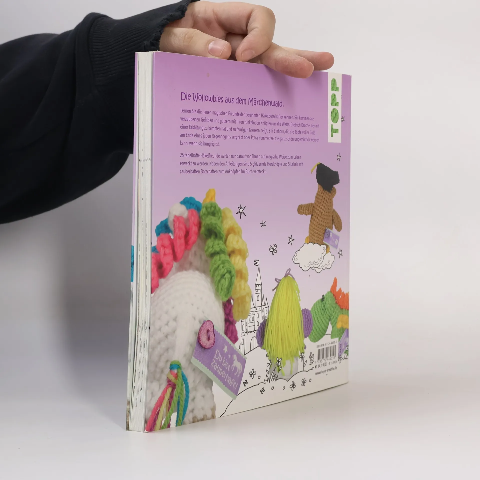 Die Wollowbies werden jetzt noch fabelhafter. Schwups und schon haben die kleinen, schon berühmten Häkelbotschafter neue Freunde gefunden. Sie kommen aus verzauberten Gefilden und Glitzern mit ihren funkelnden Knöpfen um die Wette. Vom Schloßgespenst übers Einhorn können nun sämtliche magische Figuren nachgehäkelt werden. Und der Spaß kommt auf keinen Fall zu kurz. Die fröhlichen Kerlchen sind wieder ausgestattet mit Steckbriefen und kleinen Geschichten und warten nur darauf von Ihnen ins Leben gehäkelt zu werden. Verschenken Sie Magie und fabelhafte Wünsche mit den neuen Wollowbies.