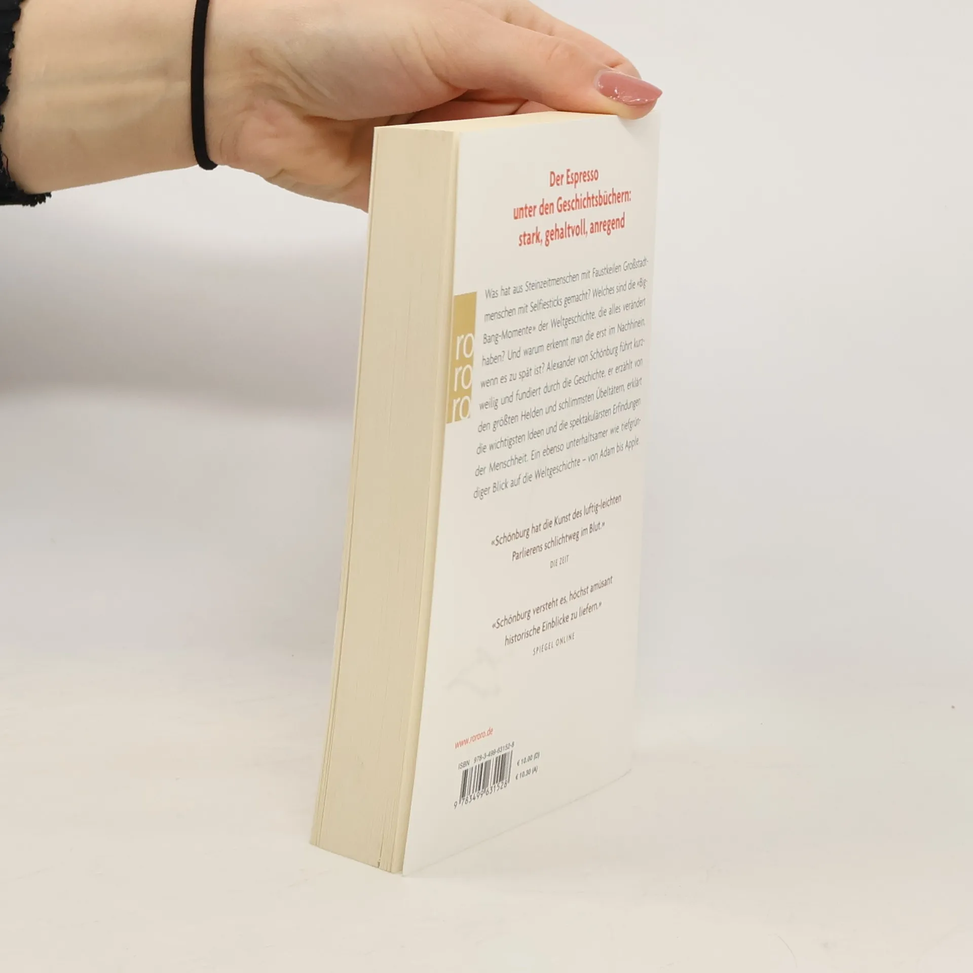 Der Espresso unter den Geschichtsbüchern: stark, gehaltvoll, anregend Eigentlich geht das gar nicht: die ganze Weltgeschichte auf 280 Seiten zu erzählen. Aber Alexander von Schönburg kann’s, und er tut es so elegant und leichtfüßig, dass man plötzlich süchtig wird nach Geschichte. Er nimmt uns mit auf die Reise zu den wichtigsten Städten der Menschheit, von Babylon über Berlin bis New York. Die größten Helden werden benannt und die schlimmsten Schurken. Schönburg erzählt von Kunstwerken, Erfindungen und Ideen der Menschheit, vom Faustkeil bis zum Selfiestick. Zu Beginn, gleichsam zum Warmlaufen, fasst er über zwei Millionen Jahre Menschheitsgeschichte auf zehn Seiten zusammen, geleitet von der Frage: Wie hat es eine eher unbedeutende Affenspezies – in der Nahrungskette irgendwo zwischen Schaf und Löwe – geschafft, sich die Erde untertan zu machen? Überraschende Durchblicke quer durch das Dickicht der Jahrtausende, pointierte Anekdoten und Porträts (was verbindet Wladimir Putin und Karl den Großen?) und verblüffende Einsichten machen das Buch zu einem Leseerlebnis und zu einem echten Schönburg. Was er Ihnen über Geschichte nicht erzählt, werden Sie nicht vermissen.