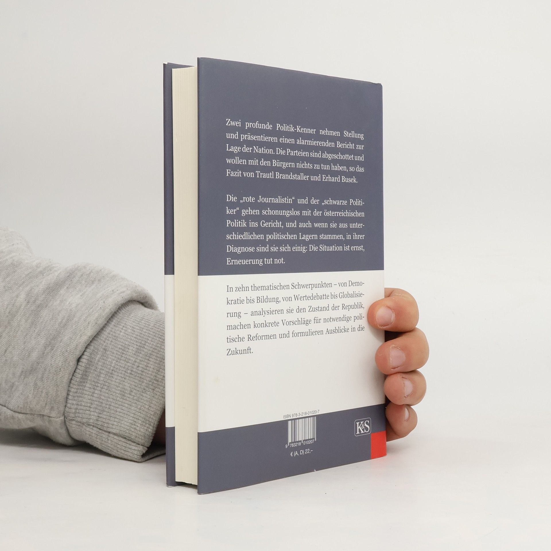 Ihre politische Positionierung könnte unterschiedlicher nicht sein: der „schwarze“ Erhard Busek und die „rote“ Trautl Brandstaller kennen einander seit Jugendtagen, lieferten sich immer wieder harte Diskussionen und doch: In ihrer Diagnose zum Zustand der österreichischen Republik sind sie sich einig: Die Lage ist ernst, Erneuerung tut Not. In zehn thematischen Schwerpunkten analysieren sie den Zustand der Republik, machen konkrete Vorschläge für notwendige politische Reformen und formulieren Ausblicke in die Zukunft. Ob Bildungspolitik oder Demokratiereform, interkulturelle Verständigung, Wirtschaftspolitik, Wertedebatte oder die Kommerzialisierung von Medien und Kultur: Sie nehmen pointiert Stellung und scheuen sich nicht, auch unbequeme Meinungen zu vertreten.