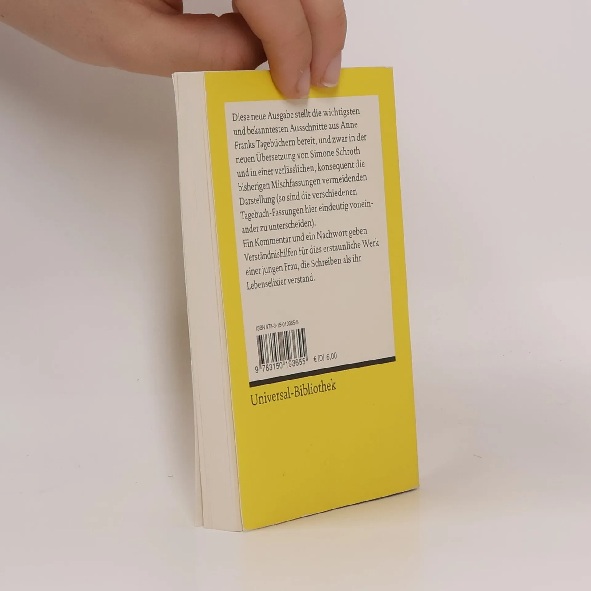 Das Tagebuch der Anne Frank ist weltberühmt als Dokumentation des unmenschlichen Alltags unter der Nazi-Herrschaft in den Niederlanden. Das Werk erfährt in dem Anne-Frank-Film »Das Tagebuch der Anne Frank« (2016) eine eindrucksvolle Würdigung. Reclams neue Ausgabe des Anne-Frank-Tagebuchs stellt die wichtigsten und bekanntesten Ausschnitte aus den Tagebüchern für den Schulunterricht bereit: in der neuen Übersetzung von Simone Schroth in einer verlässlichen, konsequent die bisherigen Mischfassungen vermeidenden Darstellung; die verschiedenen Fassungen sind in dieser Ausgabe eindeutig voneinander zu unterscheiden. Ein Kommentar und ein Nachwort geben Verständnishilfen für dies erstaunliche Werk einer jungen Frau, die Schreiben als ihr Lebensmotto verstand.