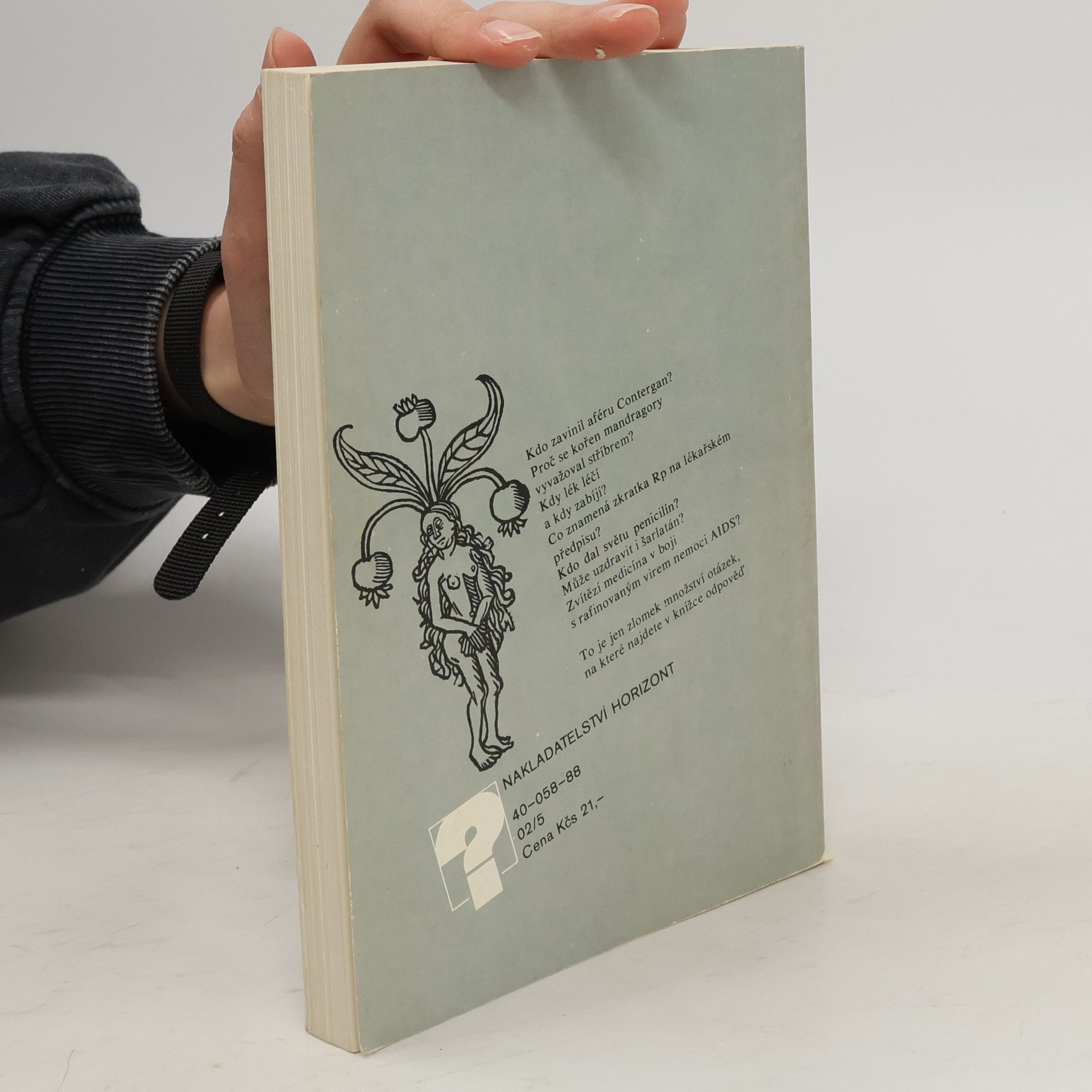 Z obsahu: Proč to bolí?, Medicína na Nilu, Léčiva nejstarších civilizací, Na druhé straně oceánu, Rostliny s léčivou mocí, Léčivé rostliny dnes, Lék nebo jed?, Aby to nebolelo čili o narkóze, Ti, kteří se zasloužili, Muž,který dal světu penicilín, Malá historie lékáren, Šarlatáni, Jak působí lék?, Jak vzniká moderní lék?, Nejvzácnější lék na světě, Hrozba rafinovaného viru