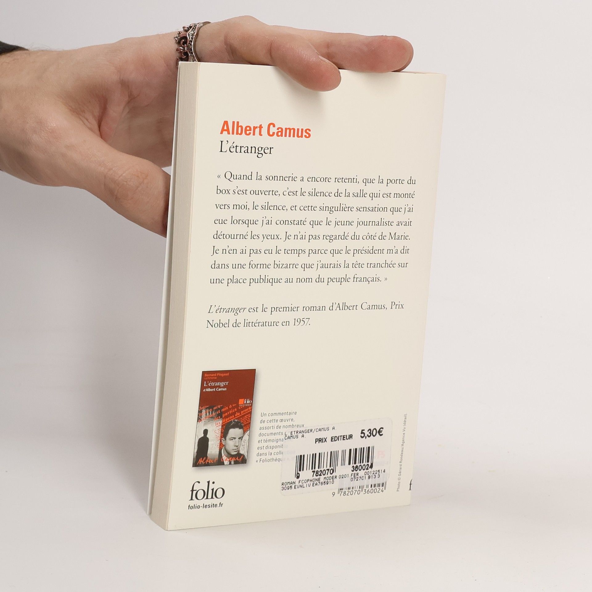 Dans Folioplus Classiques, le texte intégral, enrichi d'une lecture d'image, écho pictural de l'œuvre, est suivi de sa mise en perpective organisée en six points : Mouvement littéraire -La littérature engagée ; le genre et le registre -" Un court roman de moraliste " ; l'écrivain à sa table de travail -Un classicisme " instinctif " ; le groupement de textes -Personnages insoumis ; la chronologie -Albert Camus et son temps ; la fiche -Des pistes pour rendre compte de sa lecture.