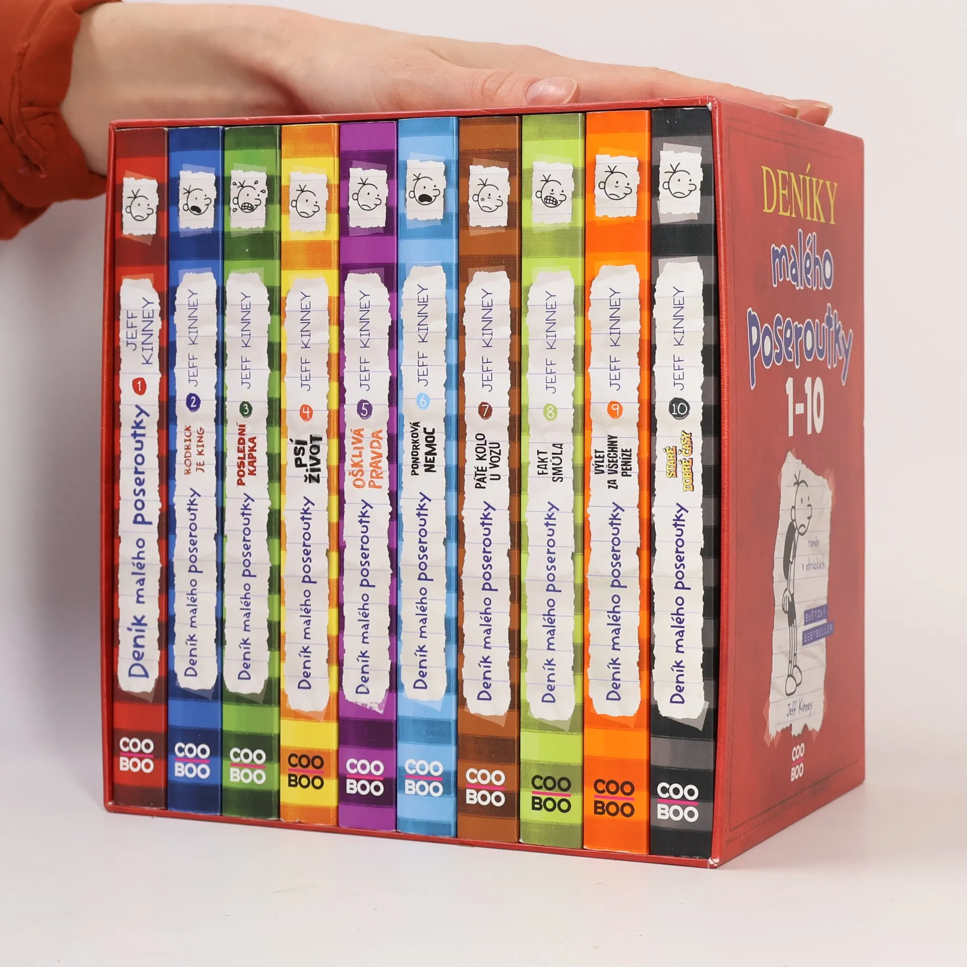 Vydatná porce zábavy s malým poseroutkou pěkně pohromadě! Zbrusu nový box, který obsahuje všech deset dobrodružství Grega Heffleyho alias malého poseroutky! Když je vám tak jedenáct, může to být fakt opruz. A nikdo to neví líp než Greg Heffley, protože se najednou ocitl na škole, kde malí poseroutkové, jako je on, naráží každý den na chodbách do kluků, kteří jsou větší, silnější a holit by se mohli dvakrát denně. Deník malého poseroutky není jen tak obyčejný deníček. Greg tenhle sešit dostal od mámy. A to přesto, že deníky jsou přece jenom pro holky! Takže si nemyslete, že to bude nějaké „milý deníčku“ tohle a „milý deníčku“ támhleto