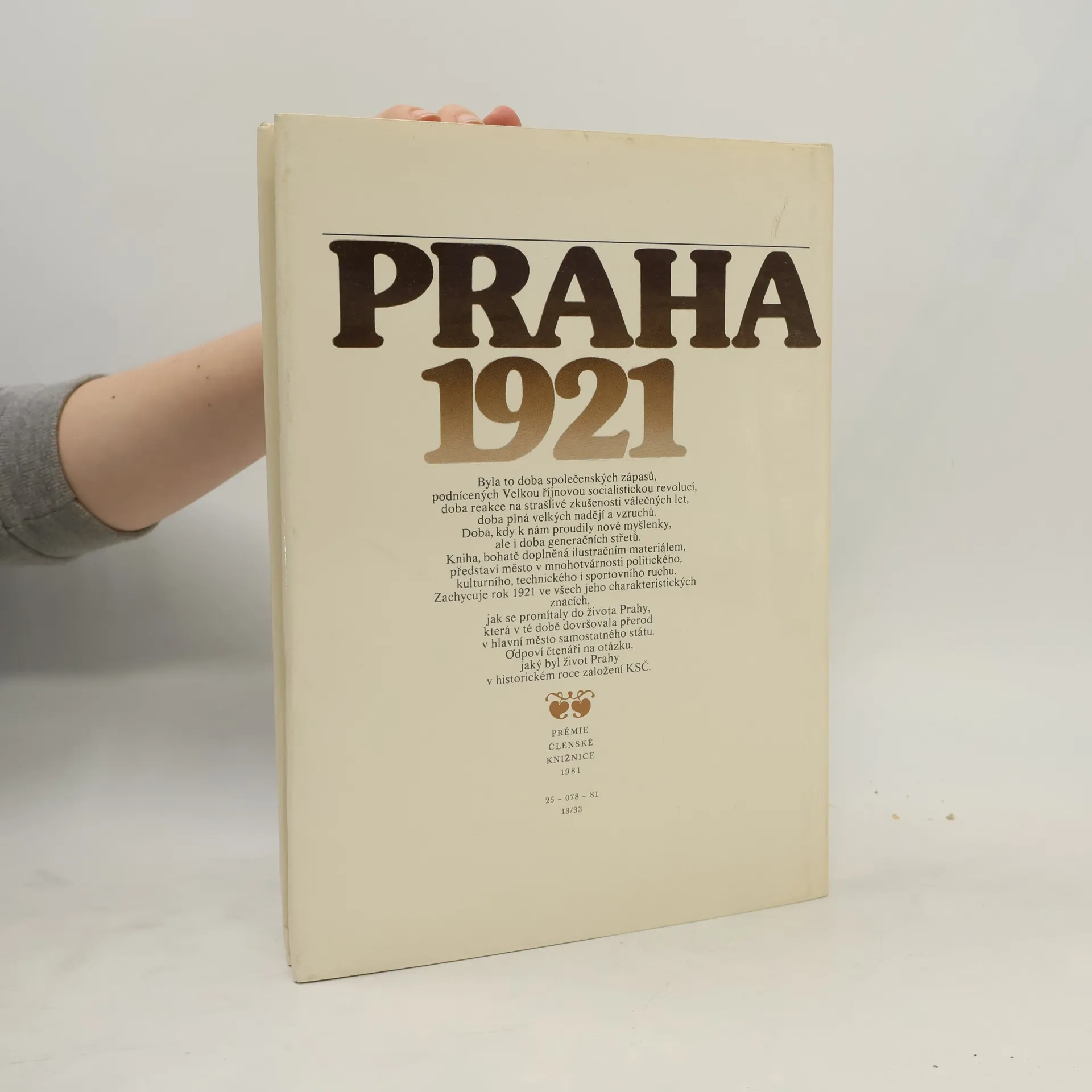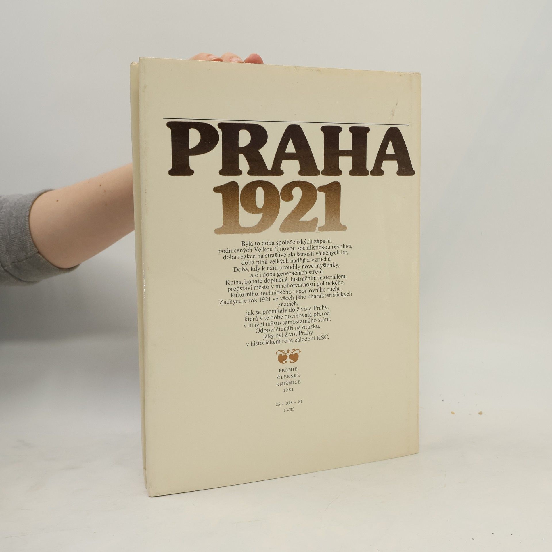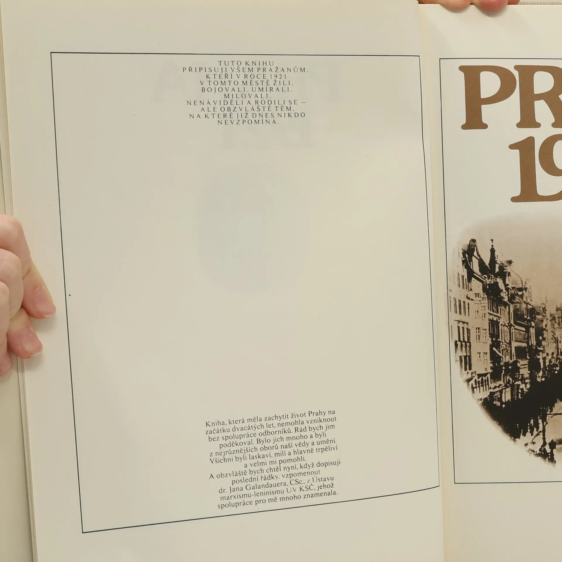 Kniha, doplněná bohatými ilustracemi, představuje město v mnohotvárnosti společenského, politického, kulturního, technického i sportovního ruchu. Zachycuje rok 1921 ve všech jeho charakteristických znacích. Slova autora: Tuto knihu připisuji všem Pražanům, kteří v tomto městě v roce 1921žili, bojovali, umírali, milovali, nenáviděli a rodili se - ale obzvláště těm, na které již dnes nikdo nevzpomíná.