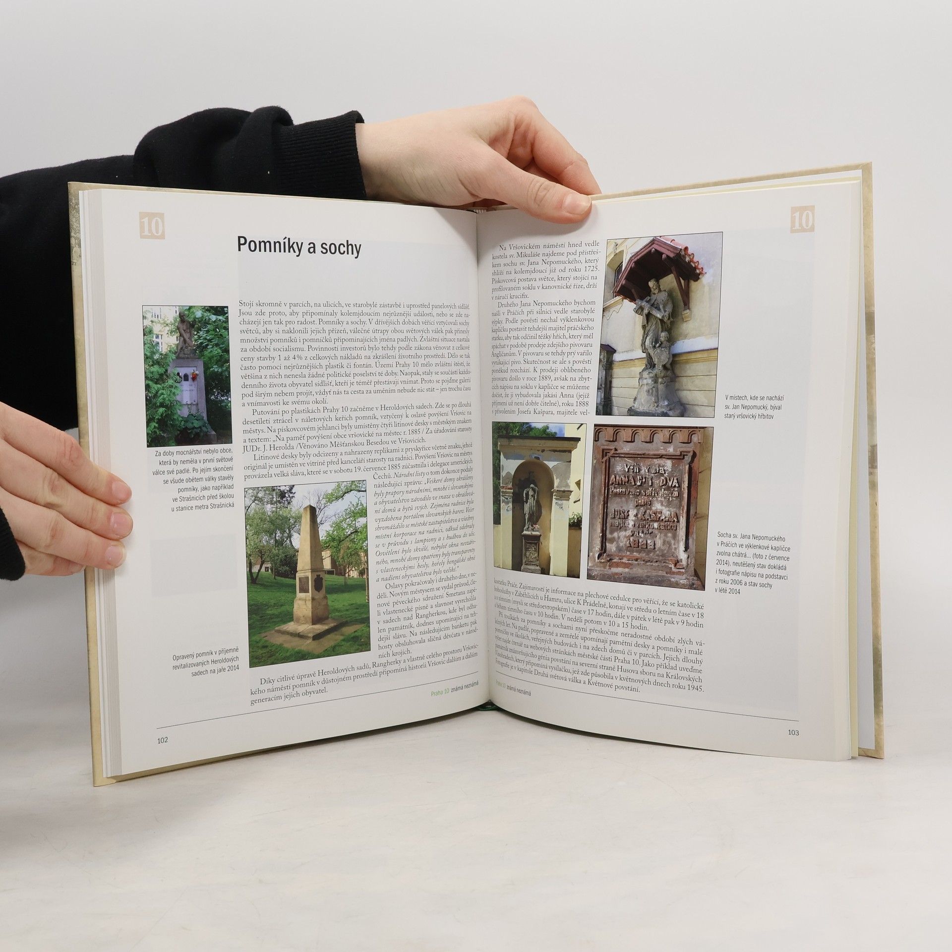 Další kniha z řady nakladatelství MILPO "Praha známá neznámá" je věnována Praze 10. Úvodní kapitoly pojednávají o dějinách této části Prahy včetně pravěkých dob, z nichž se dodnes zachovaly zajímavé archeologické nálezy. Autoři zmiňují postupně historii jednotlivých oblastí v Praze 10: Vršovic, Strašnic, Malešic, Záběhlic, Vinohrad a Michle. Další části se věnují tvrzím, usedlostem, zámečkům, kostelům a kaplím, parkům a sadům. Velký význam přisoudili autoři vilám, které se nacházejí hlavně ve vinohradské části Prahy 10 a které obývaly význačné osobnosti naší kultury (bratři Čapkové, L. Šaloun). V dalších částech najdeme stati o pomnících a sochách, městské dopravě, vodních tocích, mlýnech, průmyslových podnicích, nemocnicích, sportovních stavbách a hřbitovech. Text doprovázejí současné i historické fotografie a mapky.