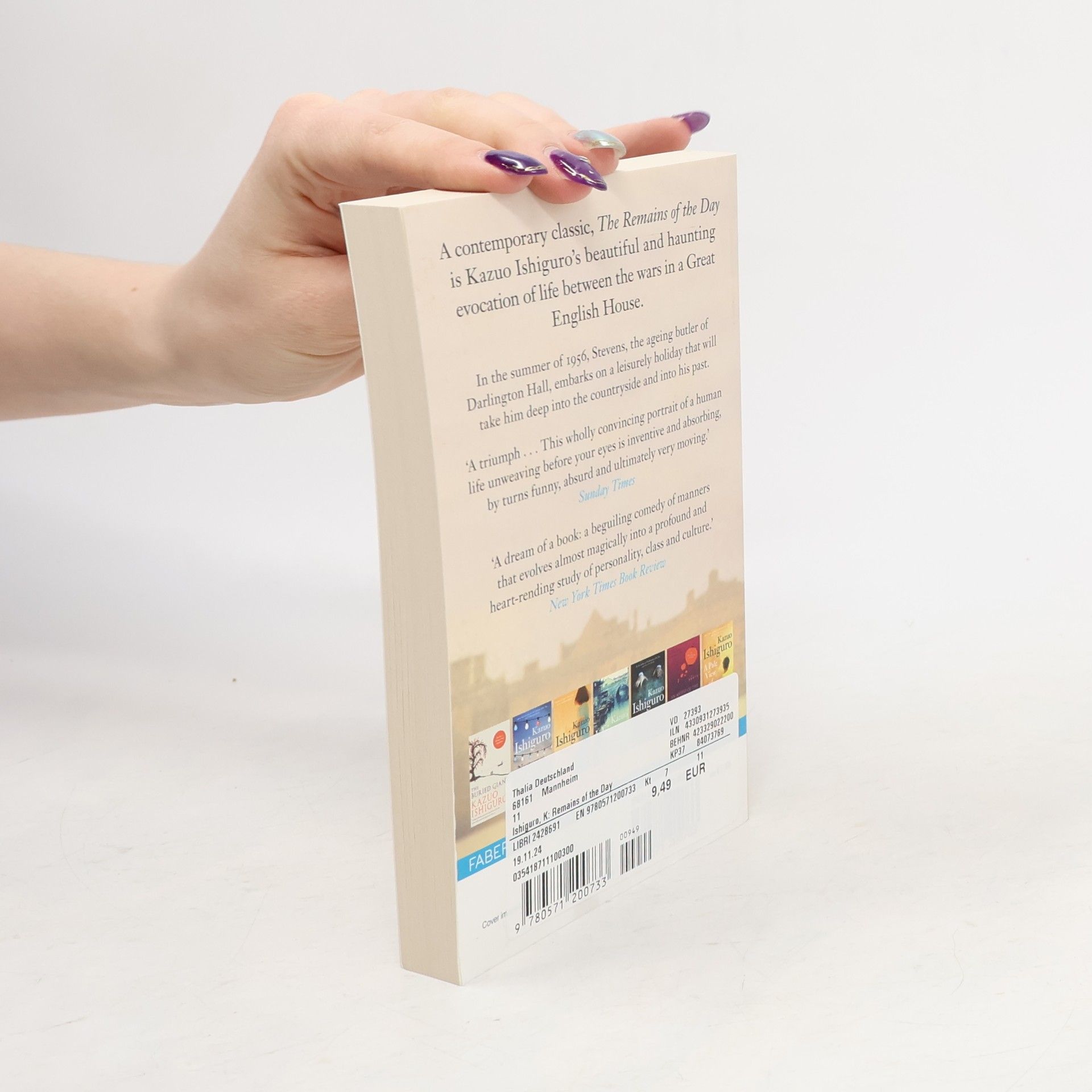 An elderly butler on holiday in the West Country in the 1950's reflects on his life and work at Darlington Hall, his former employer and his friendships. By the author of the Whitbread book of the year for 1986 An artist of the floating world.
