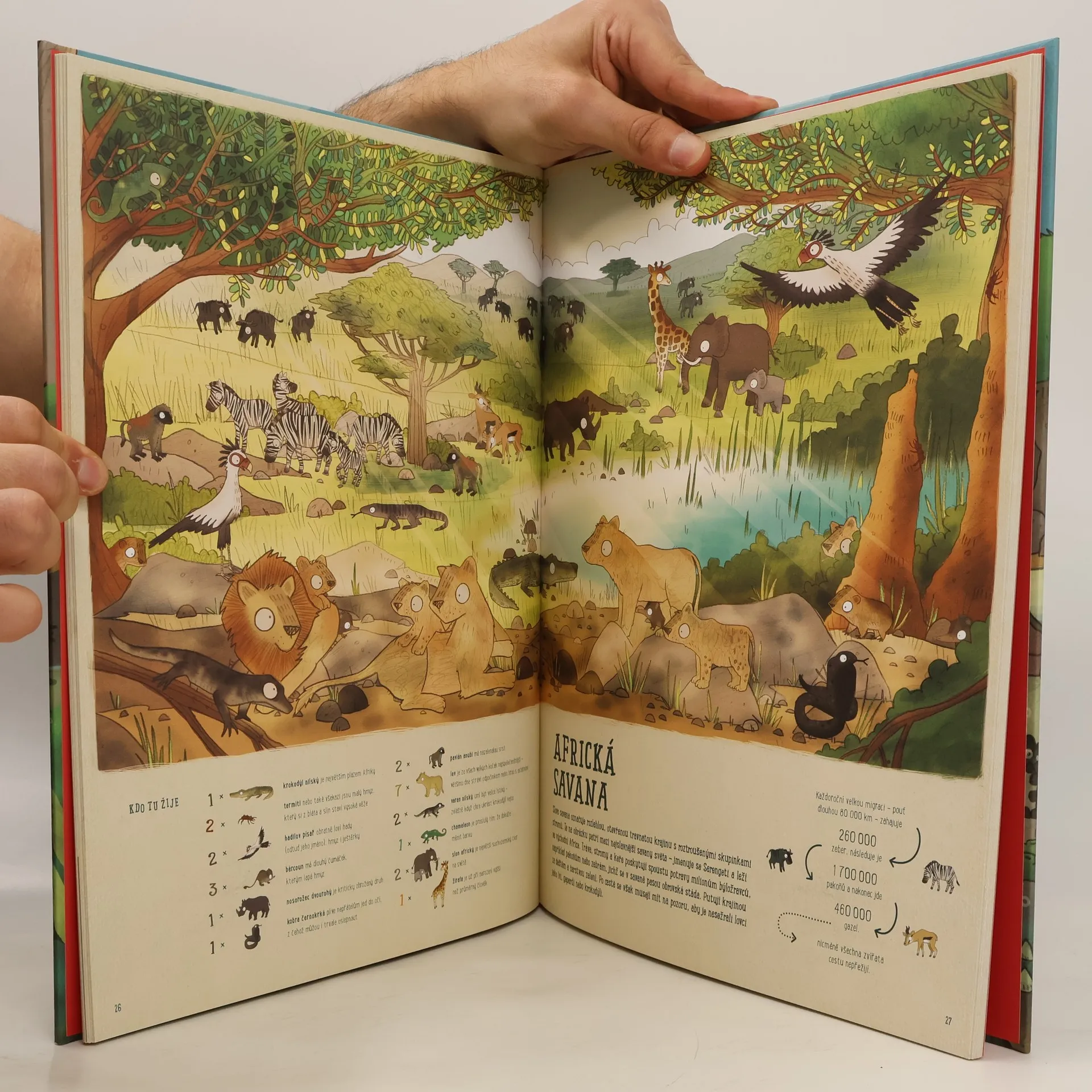 Vydej se na úžasnou cestu kolem světa za zvířaty! S velkoformátovou knihou známého ilustrátora Brendana Kearneyho děti přejdou vrcholky Himálaje, ponoří se na dno Tichého oceánu, proklestí se džunglí a jeskyněmi exotického Bornea, projdou se australskou buší a báječnou výpravu zakončí na ledovcích Antarktidy. Na všech těchto nádherných místech naší planety žijí exotické druhy zvířat, které tato kniha představuje jedinečnou výtvarnou a zábavnou formou. Děti můžou hledat jednotlivé druhy na velkých obrázcích a zažijí přitom spoustu legrace. Kniha je určena dětem od 6 let.