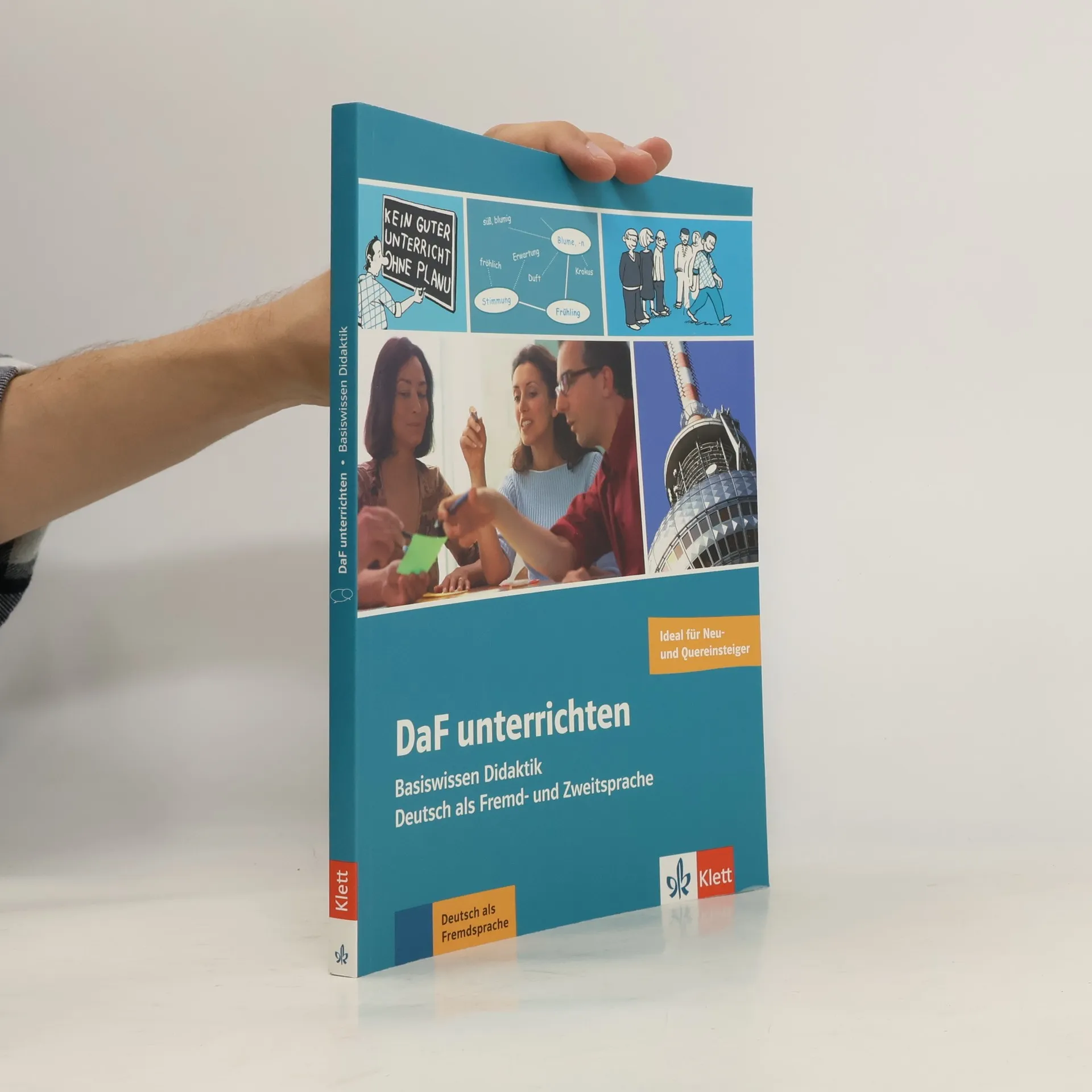 Die Neuauflage dieses praktischen Ratgebers wurde erweitert und ergänzt. Das ist neu: Leitfaden für Neueinsteiger und Ehrenamtliche. Extrakapitel : Für alle, die auf einmal Deutsch unterrichten. Perfekt für den Einstieg : In vier Abschnitten wird gezeigt, wie man die ersten Unterrichtstunden gestaltet, Wörter erklärt, die Lernenden zum Sprechen bringt und Grammatik anschaulich macht. Mit Zusatzmaterial : Kopiervorlagen online als Download Das ist bewährt: Fundierte Einführung in die DaF-Didaktik . Verstehen und Vermitteln der vier Fertigkeiten Sprechen, Hören, Schreiben und Lesen. Einführung und Anwendung der Basiskompetenzen Wortschatz, Grammatik, Phonetik und Landeskunde. Vermittlung von unterrichtsrelevanten Themen wie Interaktion im Unterricht, heterogene Lerngruppen und Binnendifferenzierung, Strategien und Lernerautonomie, Medien- und Aktivitätenrepertoire, Unterrichtsplanung, Tests und Prüfungen. Mit Video-Tutorial der Ausspracheexpertin Sandra Kroemer.