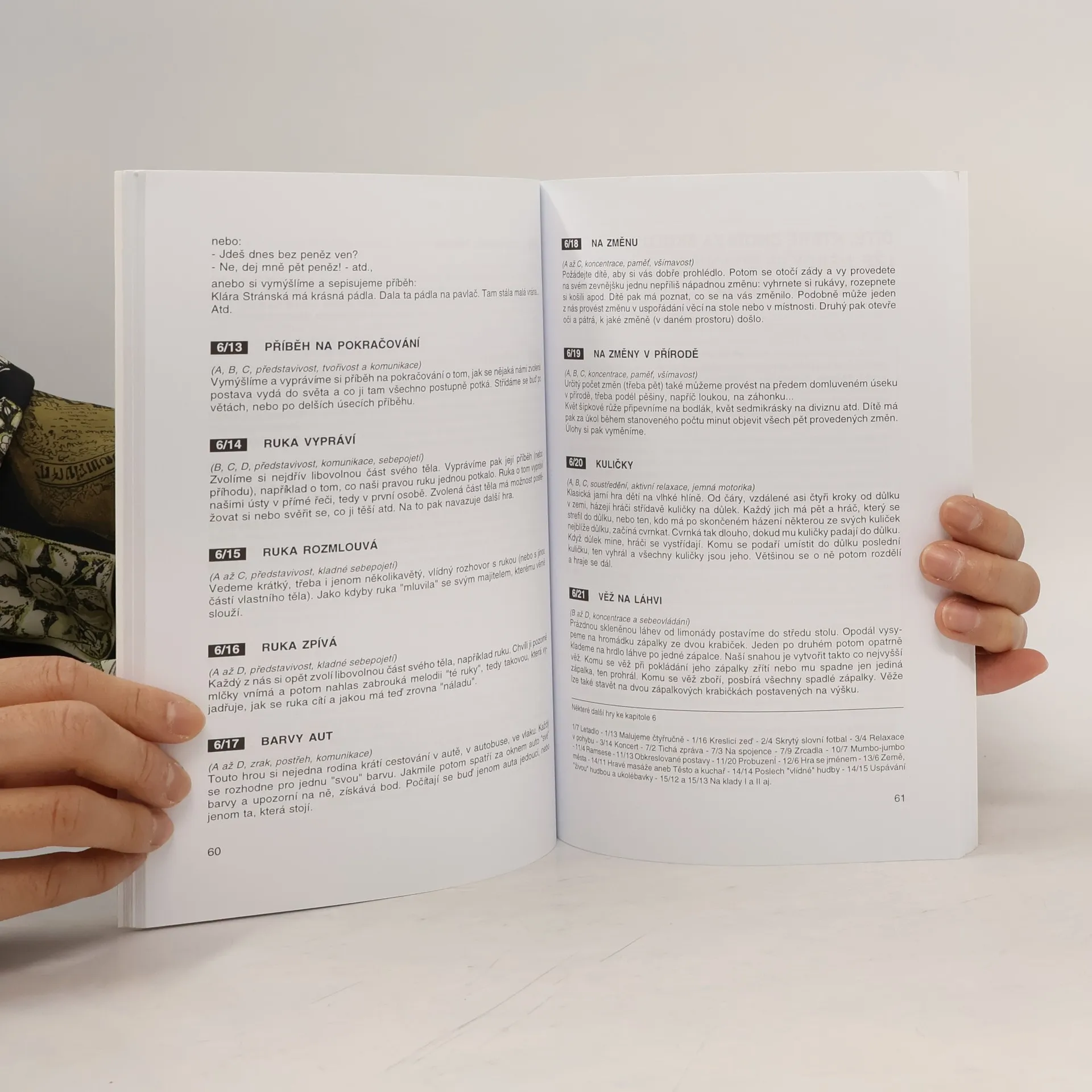 Hry a hrátky pro rodiče a dítě. Každá kapitola této knihy je věnována jednomu problémovému typu chování - dítě uzavřené, vzdorovité, neklidné, neohrabané, úzkostné, nepřizpůsobivé, plaché nebo to, které chodí za školu a lže. Chování je popsáno, jádro kapitol však tvoří soubor her, jež podporují návyky, znalosti a dovednosti, které dítěti pomohou překonávat jeho potíže.