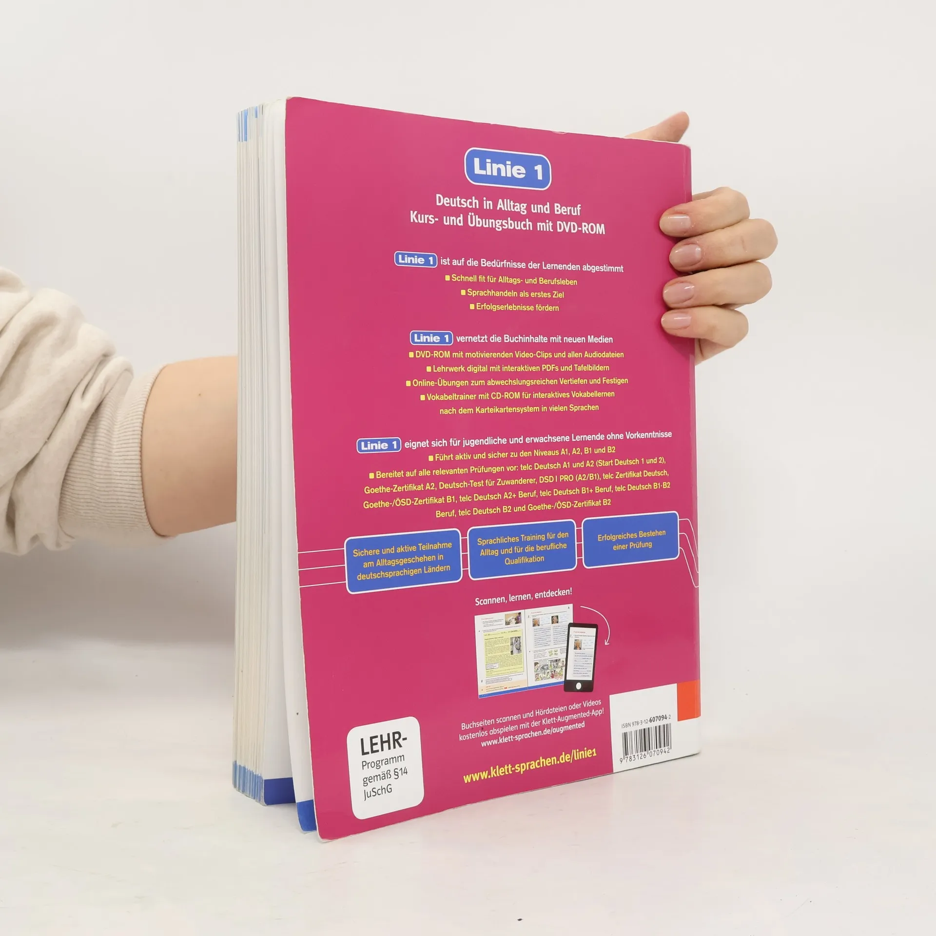 Linie 1 B1 richtet sich an Deutschlernende, die in Alltag und Beruf angemessen kommunizieren möchten. Linie 1 zeichnet sich aus durch lineare Lernwege und ein breites Angebot an Differenzierungsmöglichkeiten für heterogene Lernergruppen. Durch regelmäßige Aktivierung und Individualisierung des Gelernten führt Linie 1 zu stetigen Erfolgserlebnissen und motiviert zum eigenen Sprachhandeln außerhalb des Sprachkurses. Das Lehrwerk ist zum Einsatz im Einstiegskurs und Integrationskurs geeignet und hat die BAMF-Zulassung. Alle Video-Clips, Hörtexte und Ausspracheübungen zum Kurs- und Übungsbuch sind kostenlos online verfügbar. Der Gesamtband Linie 1 B1 führt zur Niveaustufe B1 und bereitet auf die Prüfungen telc Deutsch B1, Goethe-Zertifikat B1 und Deutsch-Test für Zuwanderer vor.
