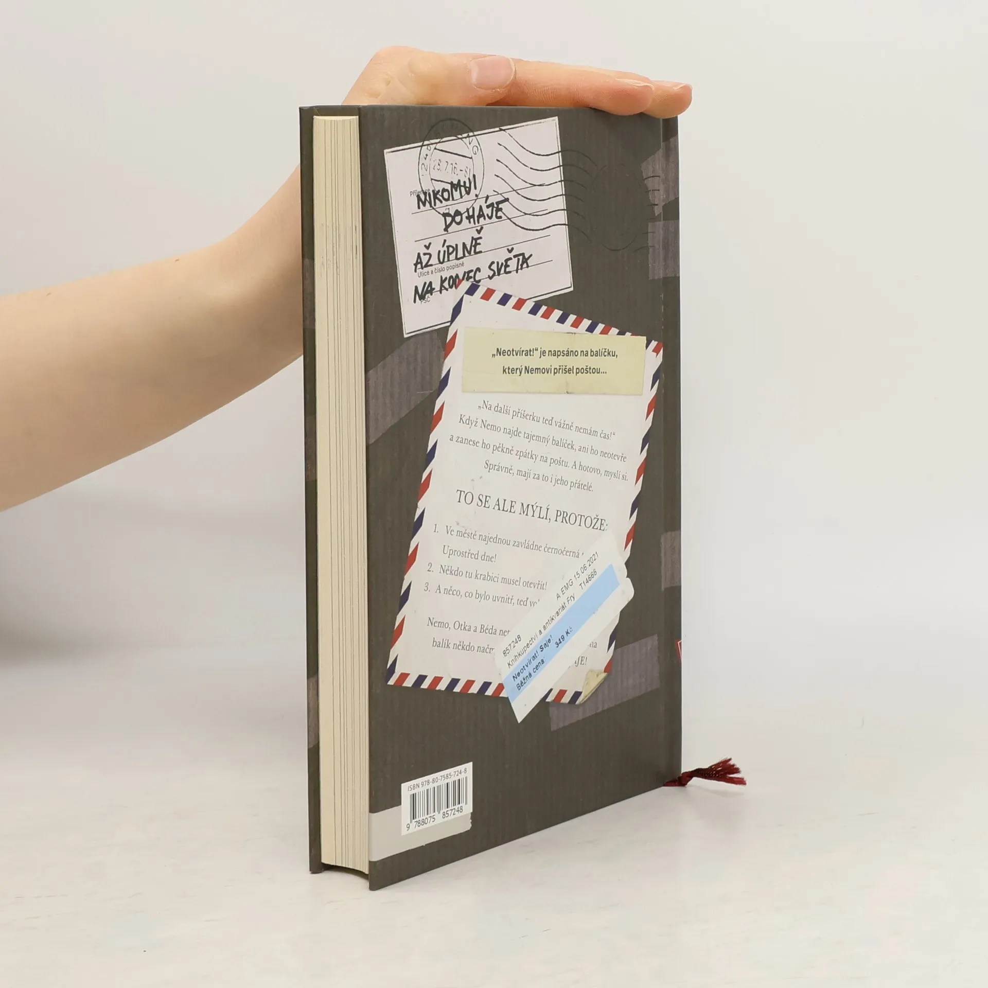 Nemo už toho má dost! Zrovna teď, když se musí učit na písemku z matematiky! Na další příšerku teď vážně nemá čas! Když zase u dveří najde balíček, ani ho neotevře a odnese ho zpátky na poštu. Správně, myslí si on i jeho kamarádi. Ve městě se přesto začnou dít neuvěřitelné věci. Horní Suchopár najednou pohltí černočerná tma. A nejen to. Někdo ten balíček musel otevřít! A to, co bylo uvnitř, teď běhá po městě! Nemo, Otka a Béda vůbec netuší, co to je. Vědí jen, že na balík někdo načmáral: „Neotvírat! Saje!“ Všichni dostanou strach. Co teď? První dva díly z řady Neotvírat! měly u dětských čtenářů úspěch. Teď je tu třetí díl. Tajemné, možná i trochu strašidelné dobrodružství tří přátel - Nema, Otky a Bédy, kteří se ze všech sil snaží zachránit město. Příběh o kamarádství a o věcech, které jsou opravdu důležité, potěší nejen dětské čtenáře. Svým vtipem a nezaměnitelnými ilustracemi Fréderica Bertranda kniha pobaví i rodiče, kteří při čtení na dobrou noc určitě neusnou...