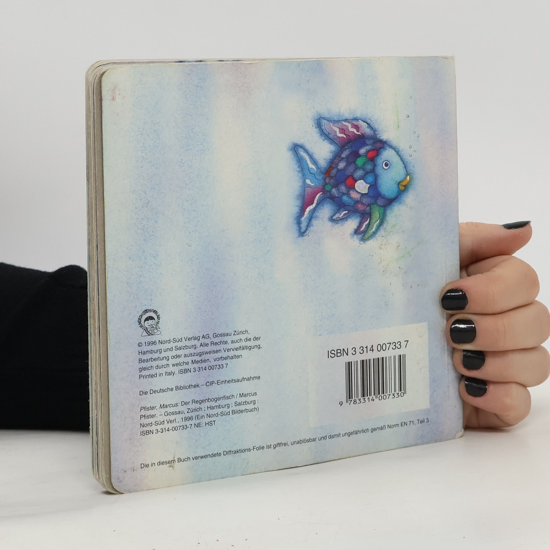 Der Erfolgstitel von 1992 (BA 1/93), der einen weiteren Band nach sich zog ("Regenbogenfisch komm hilf mir!", BA 11/95), auch in einer Riesenausgabe lieferbar, hat noch eine Schwester bekommen: eine Pappausgabe in kleinem Format, die Zahl der Bilder auf die Hälfte reduziert, der Text drastisch gekürzt, z.T. umformuliert und in die Gegenwart gebracht. Knapp wird nun das Wesentliche berichtet: der Regenbogenfisch ist zu stolz zum Teilen und vereinsamt. Erst als er von seinen glitzernden Schuppen abgibt, wird er glücklich. Die wesentlichen Teile der Bilder wurden nur um ein Drittel verkleinert, auch die eingeprägten Schuppen aus Diffraktionsfolie fehlen nicht, dafür wurden Randbeispiele abgeschnitten. Natürlich vermitteln die grossen Bilder mehr Weite, als stärkeren Eingriff empfinde ich den neuen Text. Der märchenhafte Klang, der gut zu den Illustrationen passte, fehlt. 4jährige brauchen keine Pappbände mehr. Für Bibliotheken würde ich trotz des stolzen Preises von inzwischen DM 29,80 die Originalausgabe vorziehen
