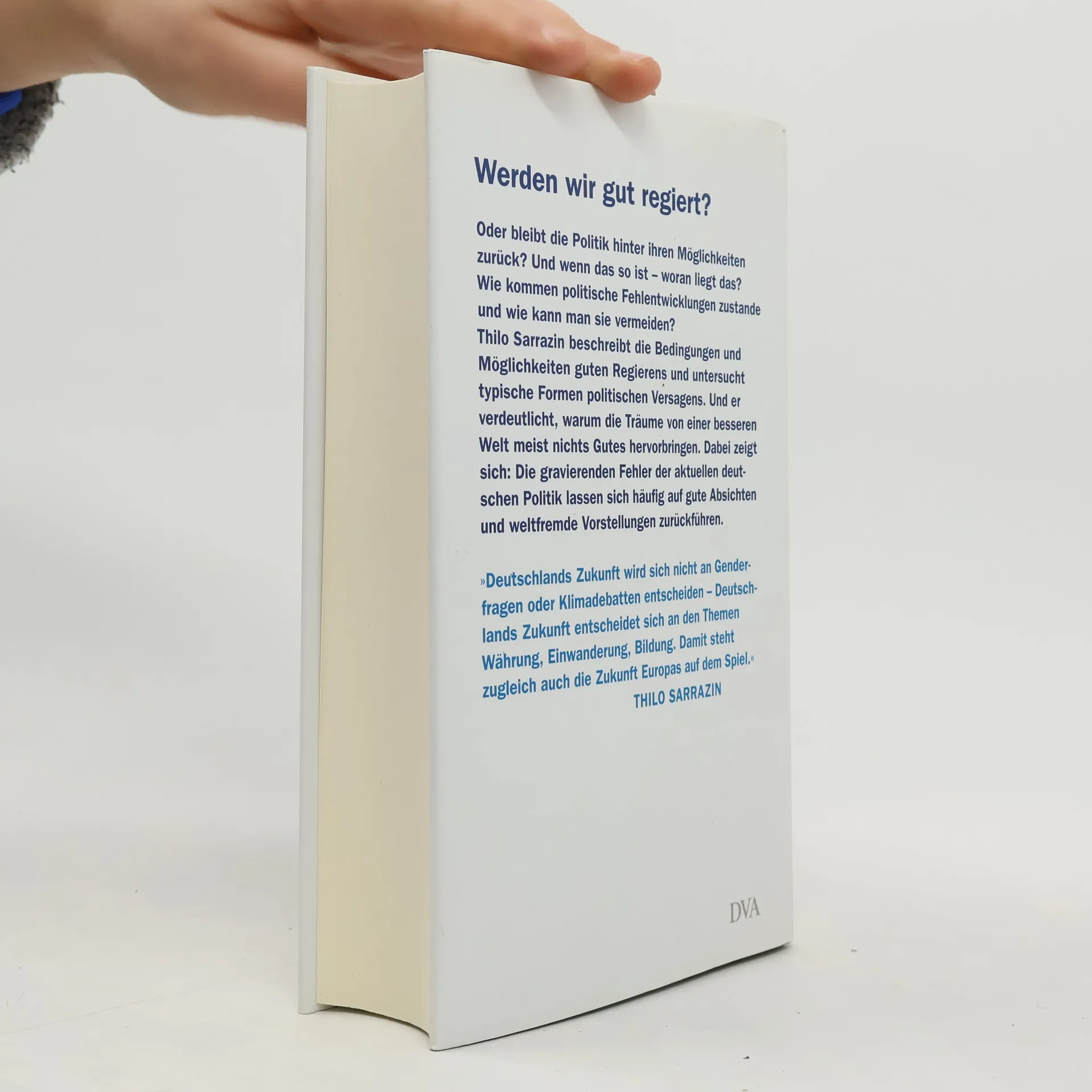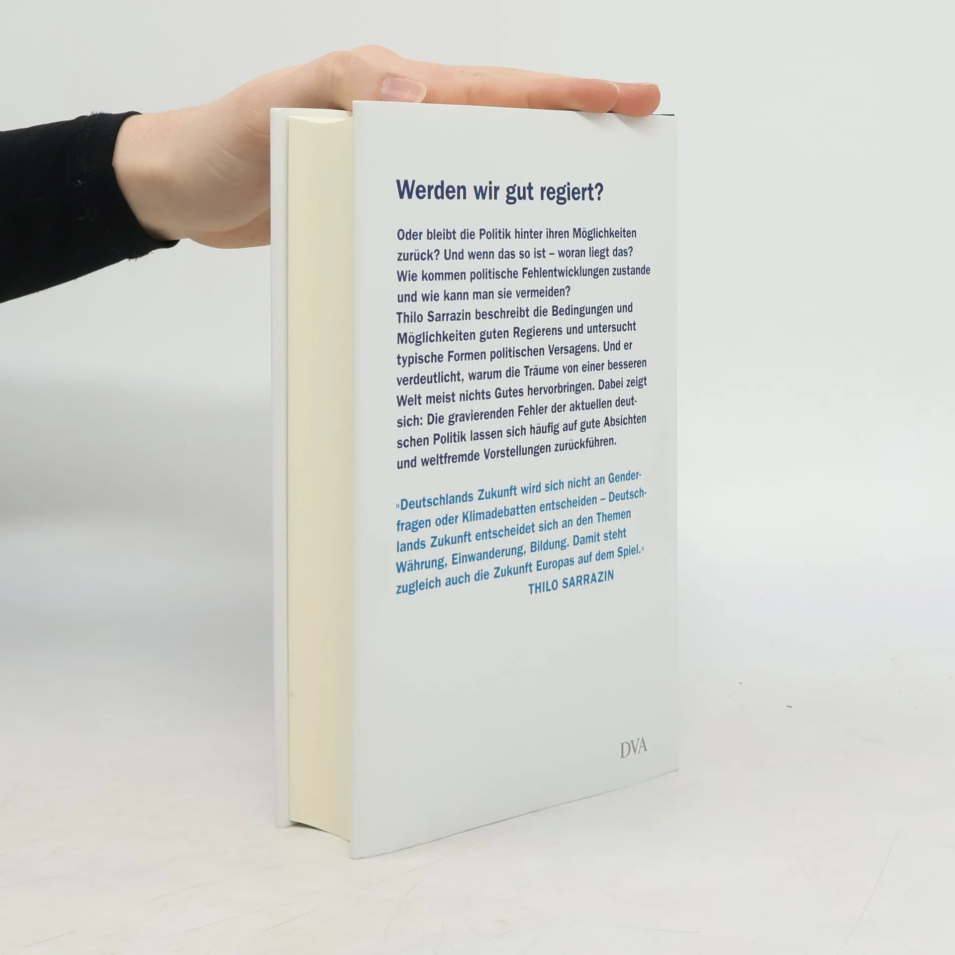 Werden wir gut regiert? Oder bleibt die Politik hinter ihren Möglichkeiten zurück? Und wenn das so ist – woran liegt das? Gibt es Techniken guten Regierens?In seinem neuen Buch beschreibt Thilo Sarrazin die Mechaniken von Politik, ihre typischen Fehler und die Gründe für den Erfolg oder Misserfolg von Gesellschaften. Er verdeutlicht, warum die Vorstellungen und Träume von einer besseren Gesellschaft oft nichts Gutes hervorgebracht haben.Von hier schlägt der Autor den Bogen zu den gravierenden Fehlern der aktuellen deutschen Politik von der Einwanderung bis zur Energiewende und erklärt ihre tieferen Ursachen. Auf dieser Grundlage gibt er seine Antworten auf die großen Fragen zur Zukunft Deutschlands. Wer dieses Buch gelesen hat, wird Politik mit anderen Augen betrachten und besser verstehen, wie politische Fehlentwicklungen zustande kommen und wie sie vermieden werden können. „Zu lange hat die Politik versäumt, die wirklich wichtigen Fragen zu adressieren. Deutschlands Zukunft wird sich nicht an Genderfragen oder Klimadebatten entscheiden - Deutschlands Zukunft entscheidet sich an den Themen Währung, Einwanderung, Bildung. Damit steht zugleich auch die Zukunft Europas auf dem Spiel.“ Thilo Sarrazin
