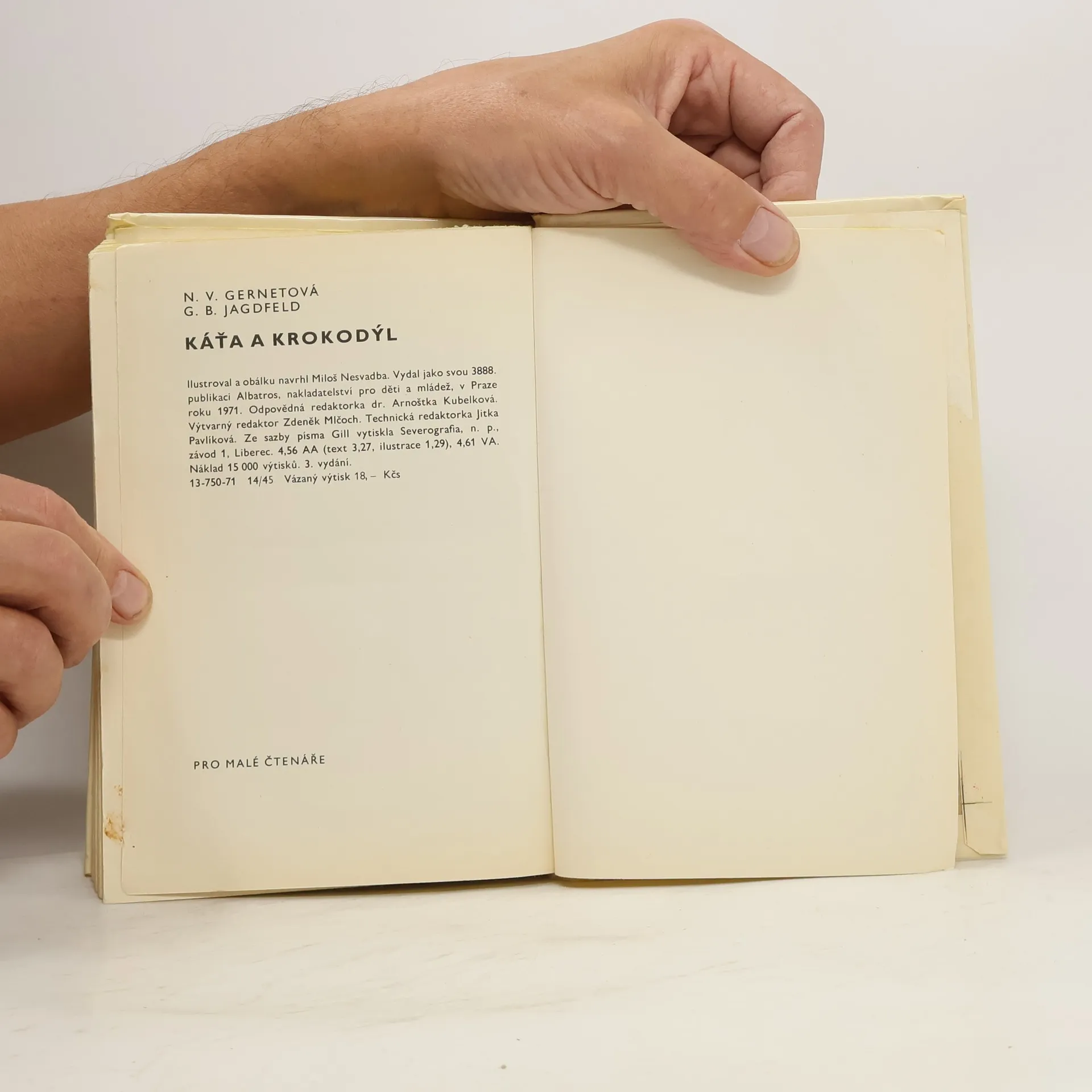 3. vydání Veselé vyprávění o příhodách, které prožije malá Káťa s krokodýlem, želvou, králíky a "mluvícím" špačkem, než je může všechny v pořádku vrátit majiteli, od kterého je převzala do opatrování.