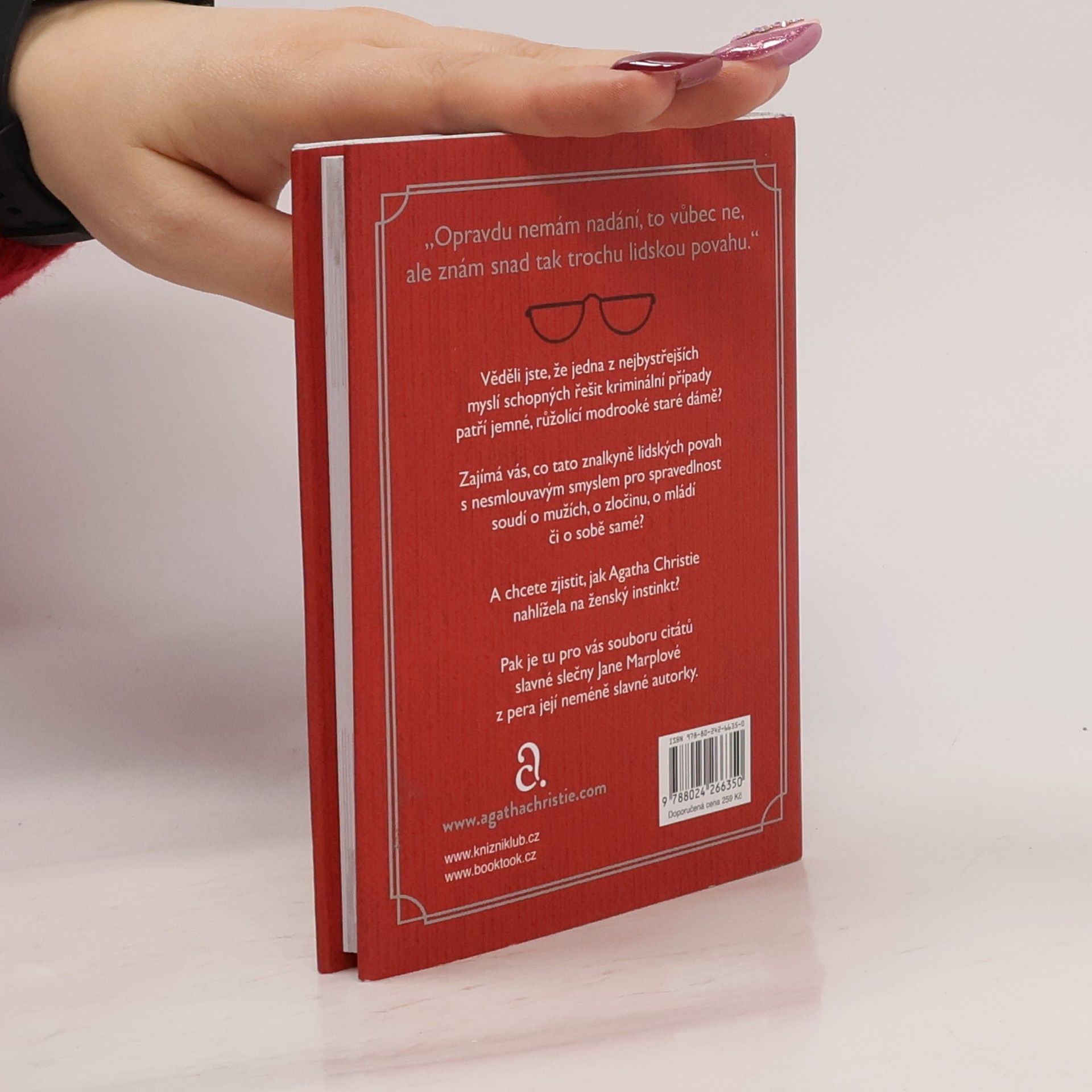 „Opravdu nemám nadání, to vůbec ne, ale znám snad tak trochu lidskou povahu.“ Po knize citátů „Malé šedé buňky: Jak to vidí Poirot“ vydává nakladatelství Kalibr také soubor citátů slečny Marplové „To je vražda, řekla“. Slavné výroky a úvahy zvídavé růžolící stařenky – o zločinu, mužích a ženách, mládí, životě i o sobě samé – doplňuje esej na téma „dělá ženská intuice z ženy dobrého detektiva?“, kterou Agatha Christie napsala jako lákadlo na knihy se svou nejslavnější pátračkou.