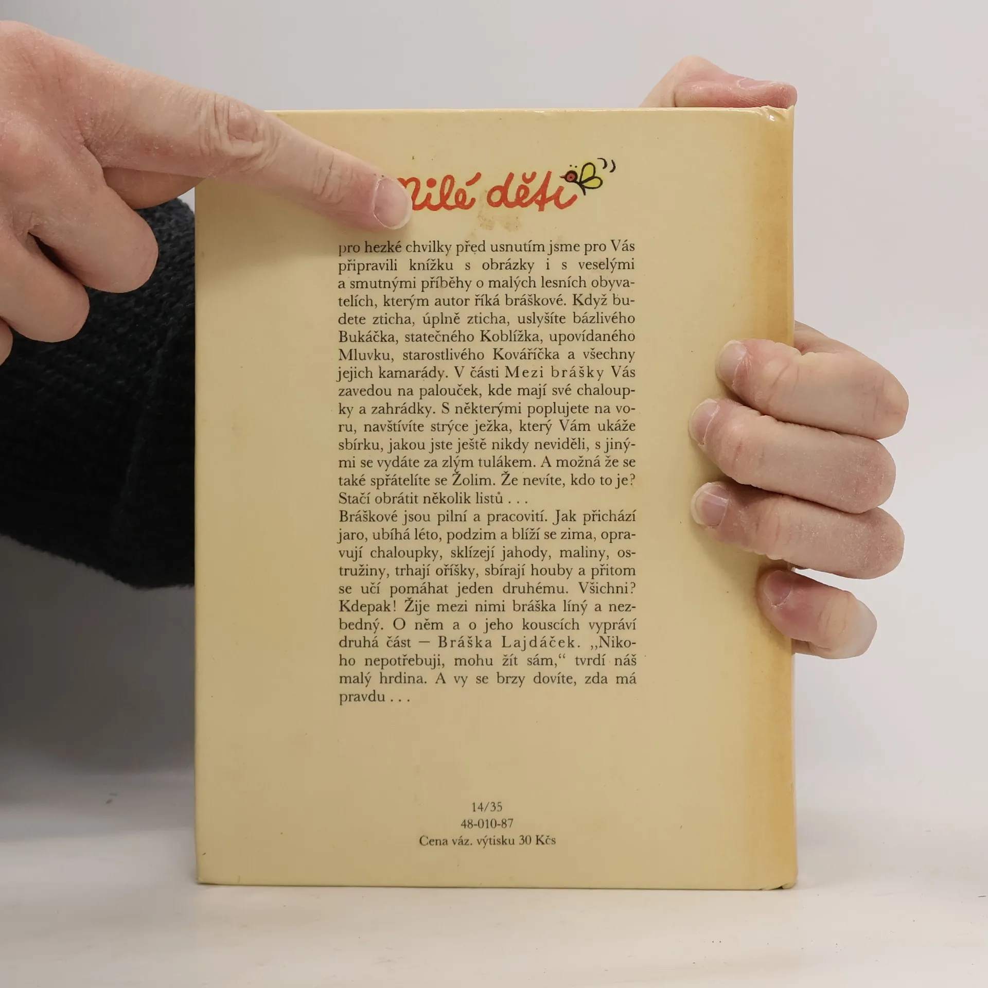 Pohádkové vyprávění pro nejmenší děti, založené na imaginárním světě malých človíčků - brášků, kteří žíjí mírumilovně mezi obyvateli lesa. Oba světy se prolínají, bráškové i zvířátka prožívají nejrůznější příhody a vzájemně si pomáhají. Kniha obsahuje 2 knížky:Mezi brášky - Bráška Lajdáček.