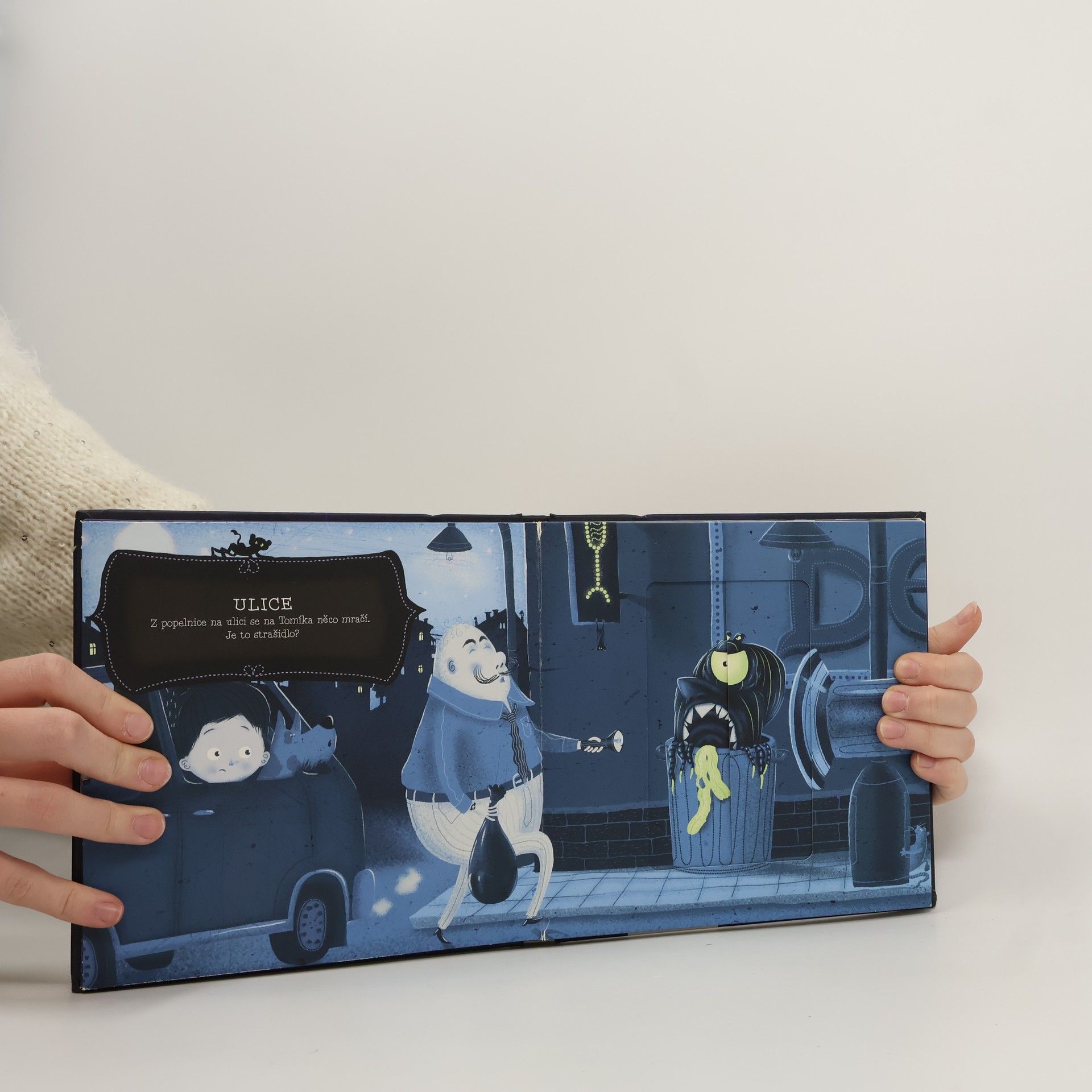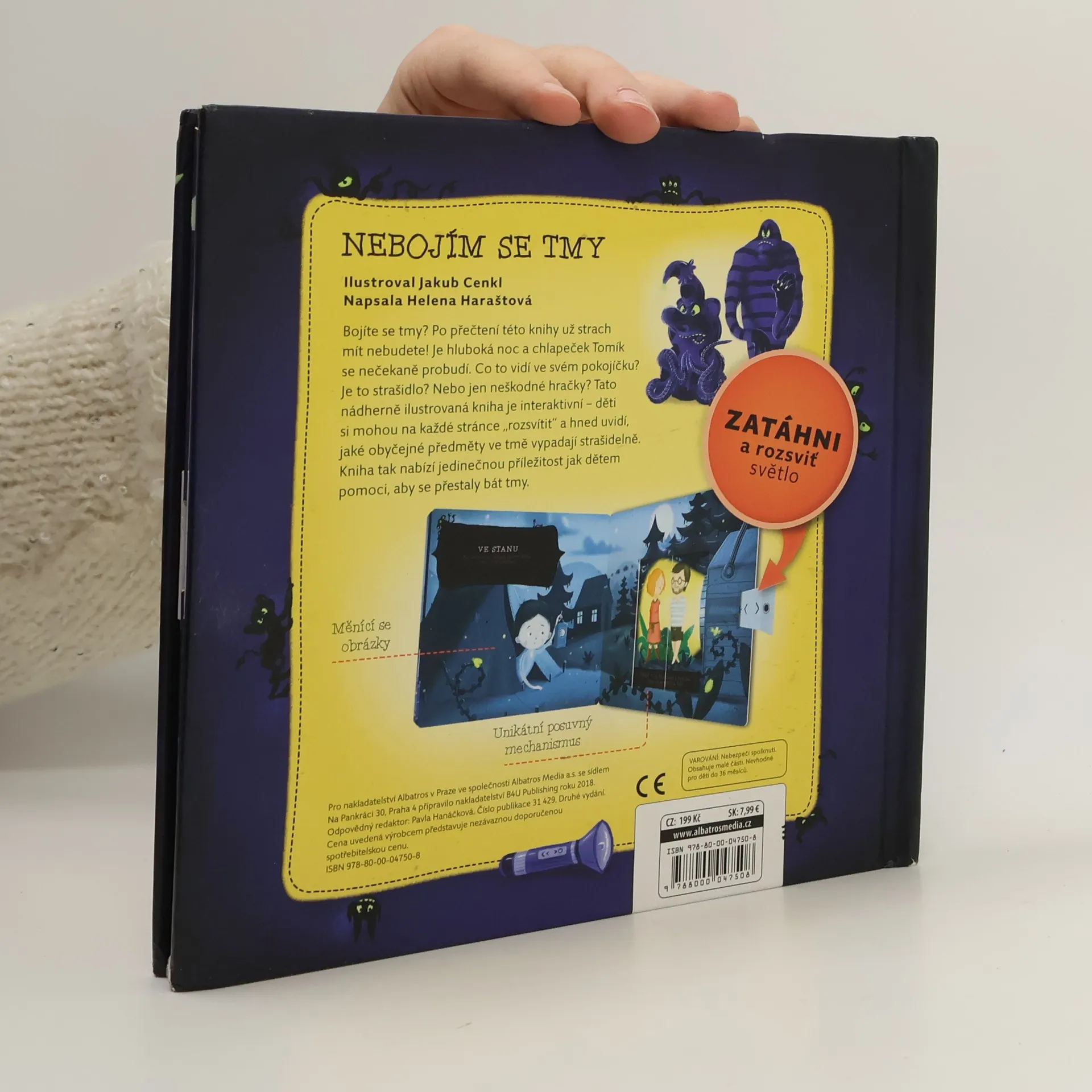 Bojí se vaše dítě tmy? Malý Tomík ano. Stejně jako skoro každé dítě na světě. Když je hluboká noc, začnou ho trápit otázky a začne mít strach. Co vidí ve svém pokojíčku? Strašidlo? Nebo jsou to hračky? Nádherně ilustrovaná interaktivní kniha dětem ukáže, že se nemusí bát! Na každé stránce si mohou „rozsvítit“ a hned uvidí, že strašidelně vypadají ve tmě i naprosto obyčejné předměty. Zábavnou formou dětem ukážete, že nemusí mít strach ze tmy!