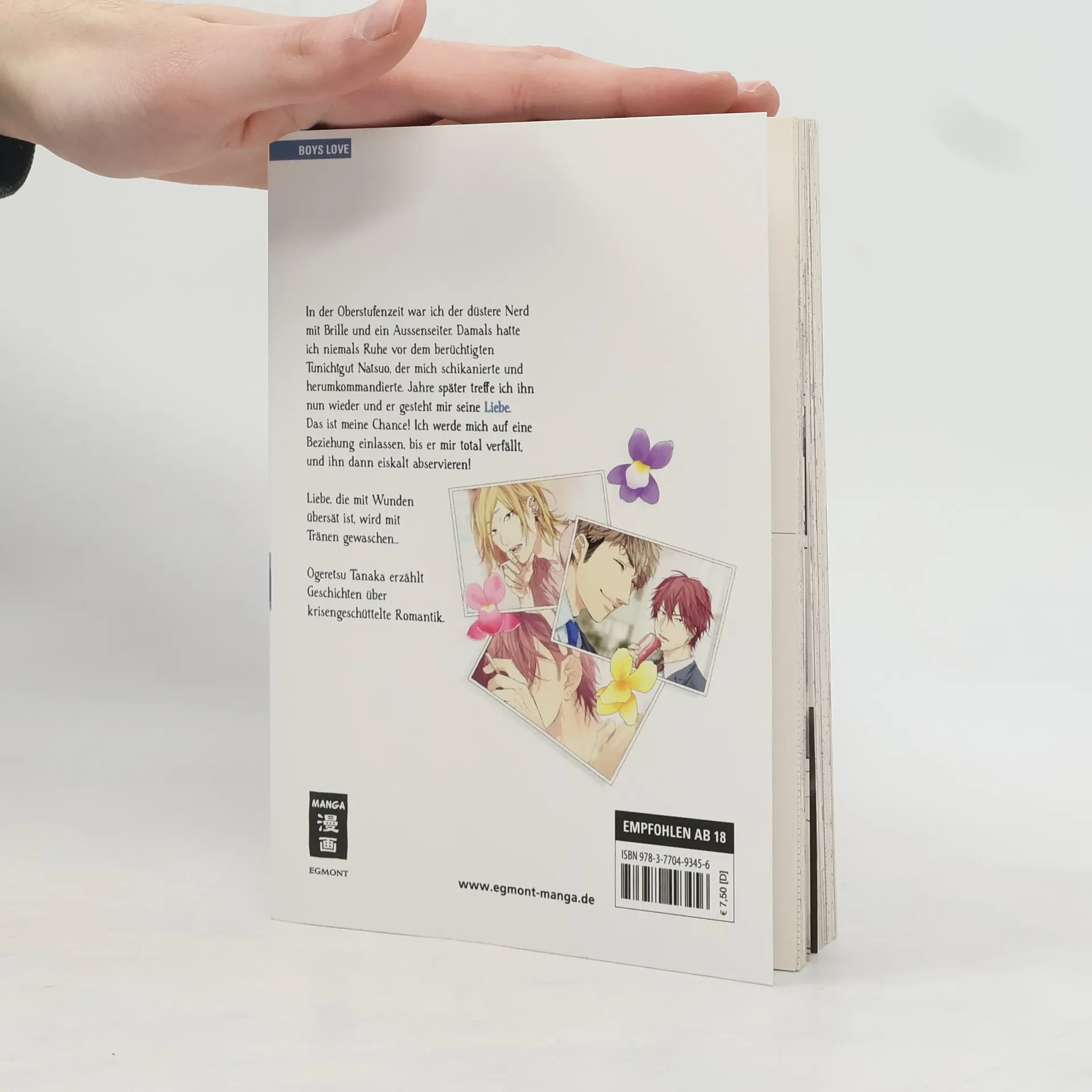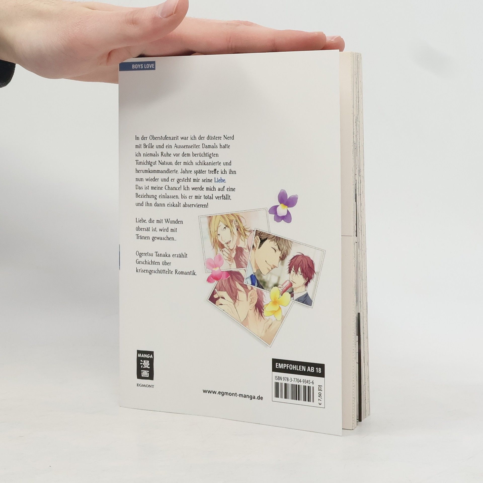 In der Oberstufenzeit war ich der düstere Nerd mit Brille und ein Aussenseiter. Damals hatte ich niemals Ruhe vor dem berüchtigten Tunichtgut Natsuo, der mich schikanierte und herumkommandierte. Jahre später treffe ich ihn nun wieder und er gesteht mir seine Liebe. Das ist meine Chance! Ich werde mich auf eine Beziehung einlassen, bis er mir total verfällt, und ihn dann eiskalt abservieren! Liebe, die mit Wunden übersät ist, wird mit Tränen gewaschen… Ogeretsu Tanaka erzählt Geschichten über krisengeschüttelte Romantik.