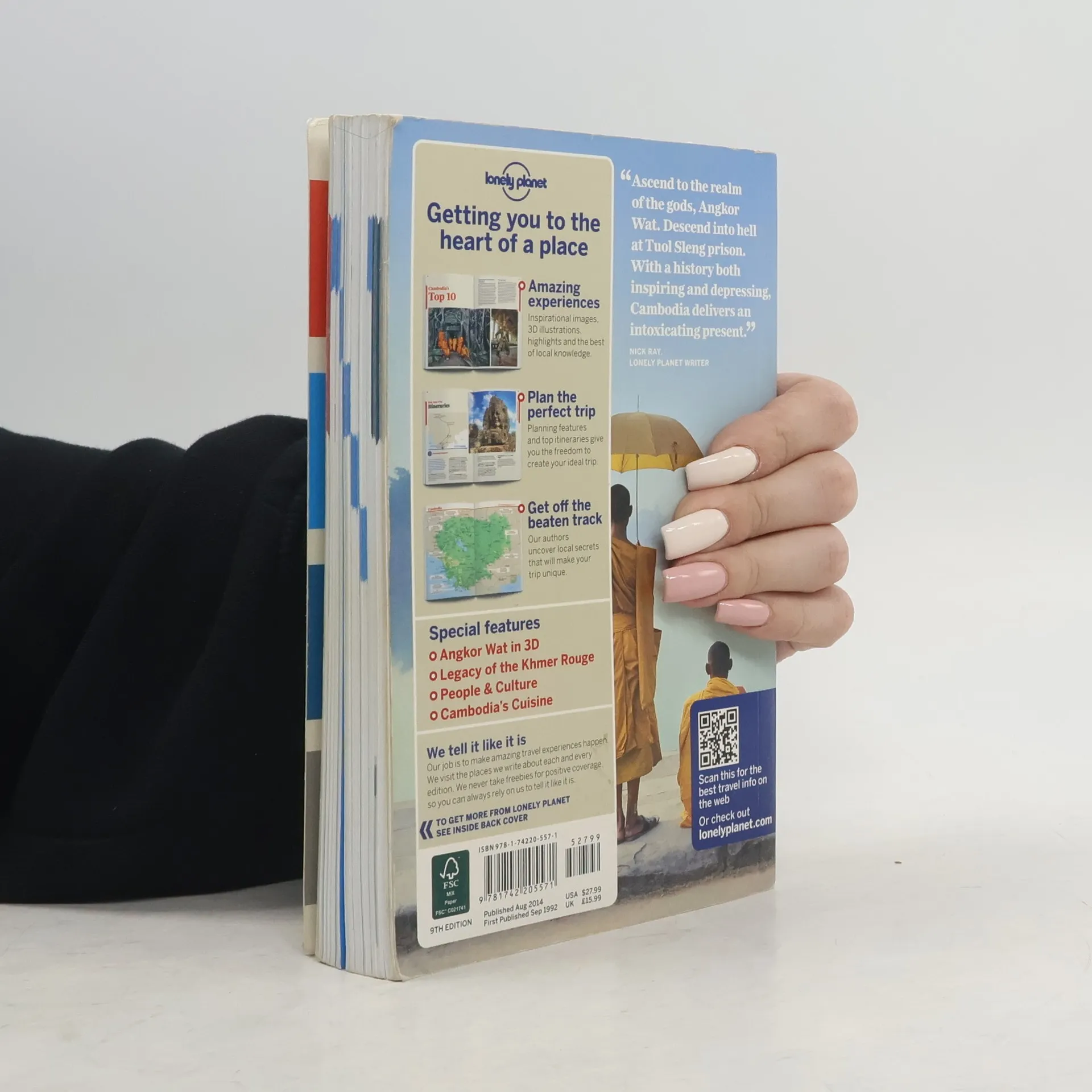 Describes the history, geography, and people of Cambodia and recommends hotels, restaurants, transportation, attractions, and nature sights.