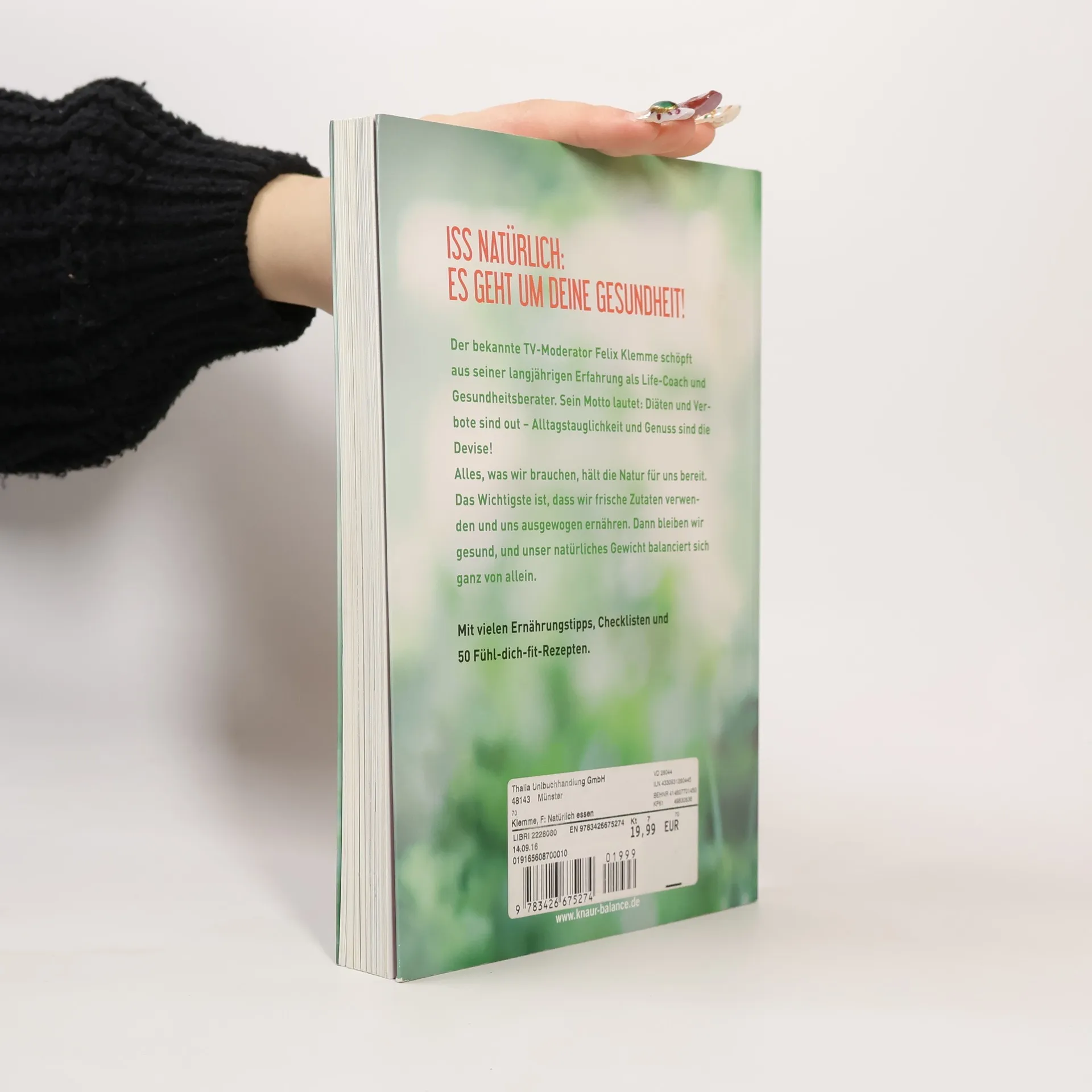 Sich gesund ernähren mit Felix Klemme Der bekannte TV-Moderator und Sportwissenschaftler Felix Klemme widmet sich nun dem Thema Ernährung. Im Anschluss an seinen Bestseller Natürlich sein wird alles Wichtige rund ums Essen erklärt. Felix Klemme schlägt erstmalig eine Brücke zwischen vegetarischer Ernährung, Paleo und dem neuen Mega-Trend Clean Eating. Der Kern dieses innovativen Ansatzes ist: Natürlichkeit und Ausgewogenheit – Diäten sind unnötig. Er erklärt nachvollziehbar, wie man richtig einkauft, seine Küche umkrempelt und schlank und gesund bleibt. Mit ca. 60 Rezepten mit Geling-Garantie Aufwendige Ausstattung mit zahlreichen Fotos aus der Klemme-Küche Sie möchten mehr zum Thema Gesunde Ernährung lesen? Auf unserer Webseite einfach ganz leben finden Sie einfache Rezepte, gesunde Ernährungstipps und alles Wissenswerte zu neuen Food-Trends.