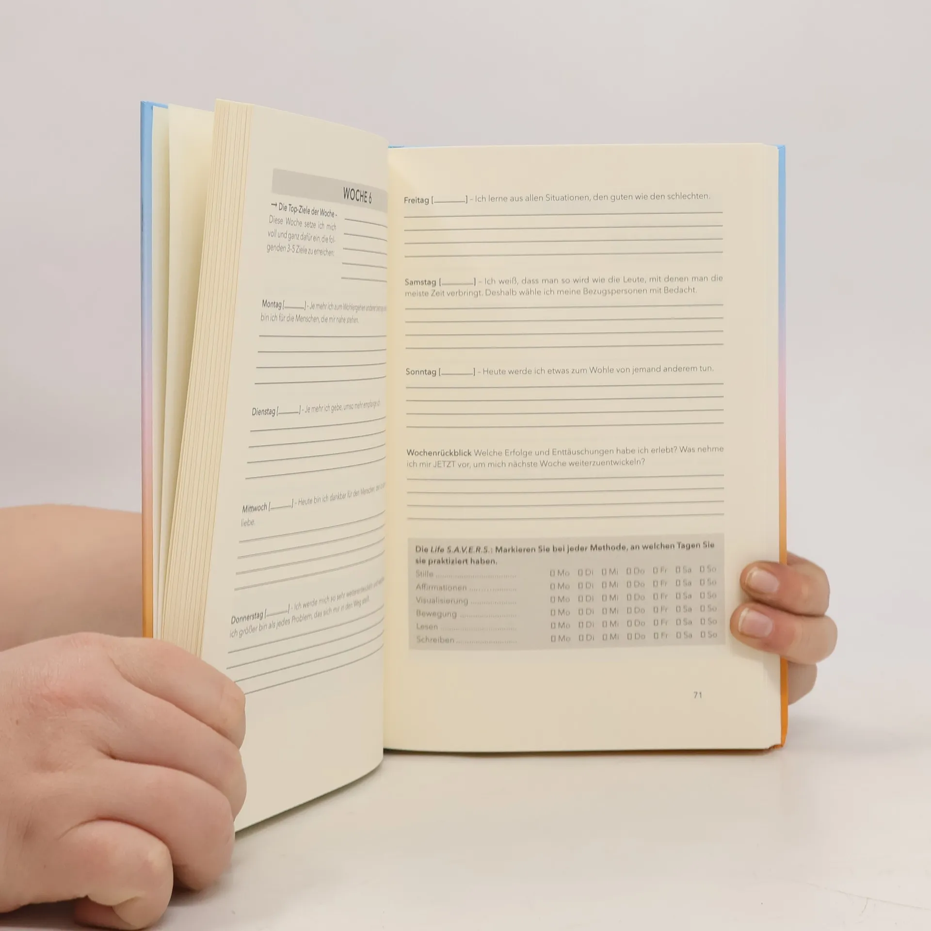Das beste Jahr Ihres Lebens wartet auf Sie Mit dem Miracle Morning -Programm fördern Sie Ihre persönliche Entwicklung und ziehen so unweigerlich Erfolg auf allen Ebenen an. Dieses Buch erklärt die Grundprinzipien und bietet Ihnen Platz ein Jahr lang täglich Ihre Gedanken einzutragen. Zahlreiche Auswertungen bieten Ihnen den Raum über Ihre Erlebnisse zu reflektieren, um aus ihnen zu lernen.