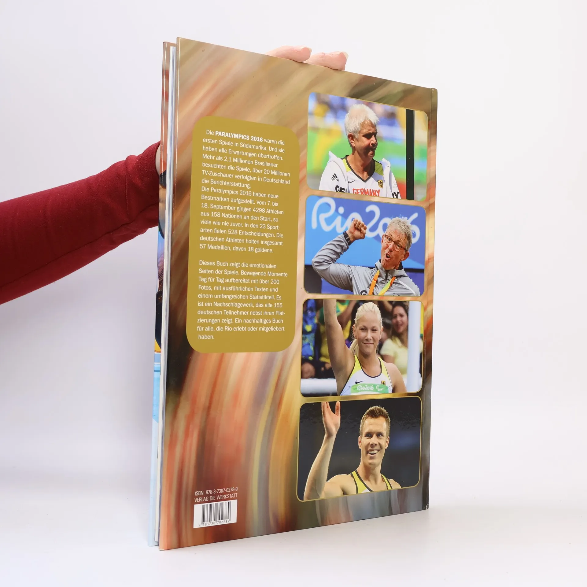 Die Paralympics 2016 waren die ersten Spiele in Südamerika. Und sie haben alle Erwartungen übertroffen: Über 2,1 Millionen Brasilianer besuchten die Spiele, über 20 Millionen TV-Zuschauer verfolgten in Deutschland die Berichterstattung. Die Paralympics 2016 haben neue Bestmarken aufgestellt: Vom 7. bis 18. September gingen 4298 Athleten aus 159 Mannschaften an den Start, so viele wie nie zuvor. In den 23 Sportarten fielen 528 Entscheidungen. Die deutschen Athleten holten insgesamt 57 Medaillen, davon 18 goldene. Dieses Buch zeigt die emotionalen Seiten der Spiele. Bewegende Momente Tag für Tag, aufbereitet mit über 200 Fotos, mit ausführlichen Texten und einem umfangreichen Statistikteil. Es ist ein Nachschlagewerk, das alle 155 deutschen Teilnehmer nebst ihren Platzierungen zeigt. Ein nachhaltiges Buch für alle, die Rio erlebt oder mitgefiebert haben.