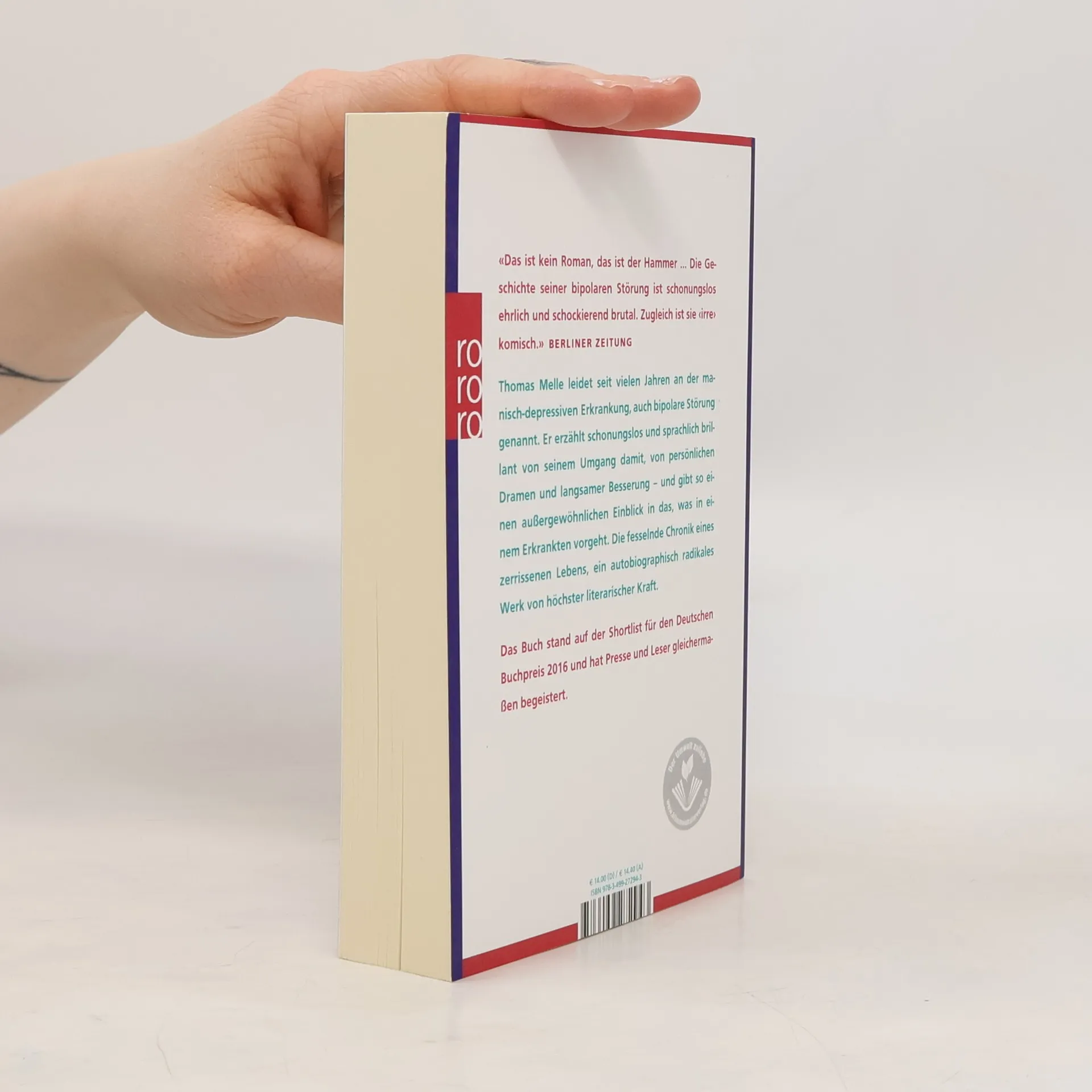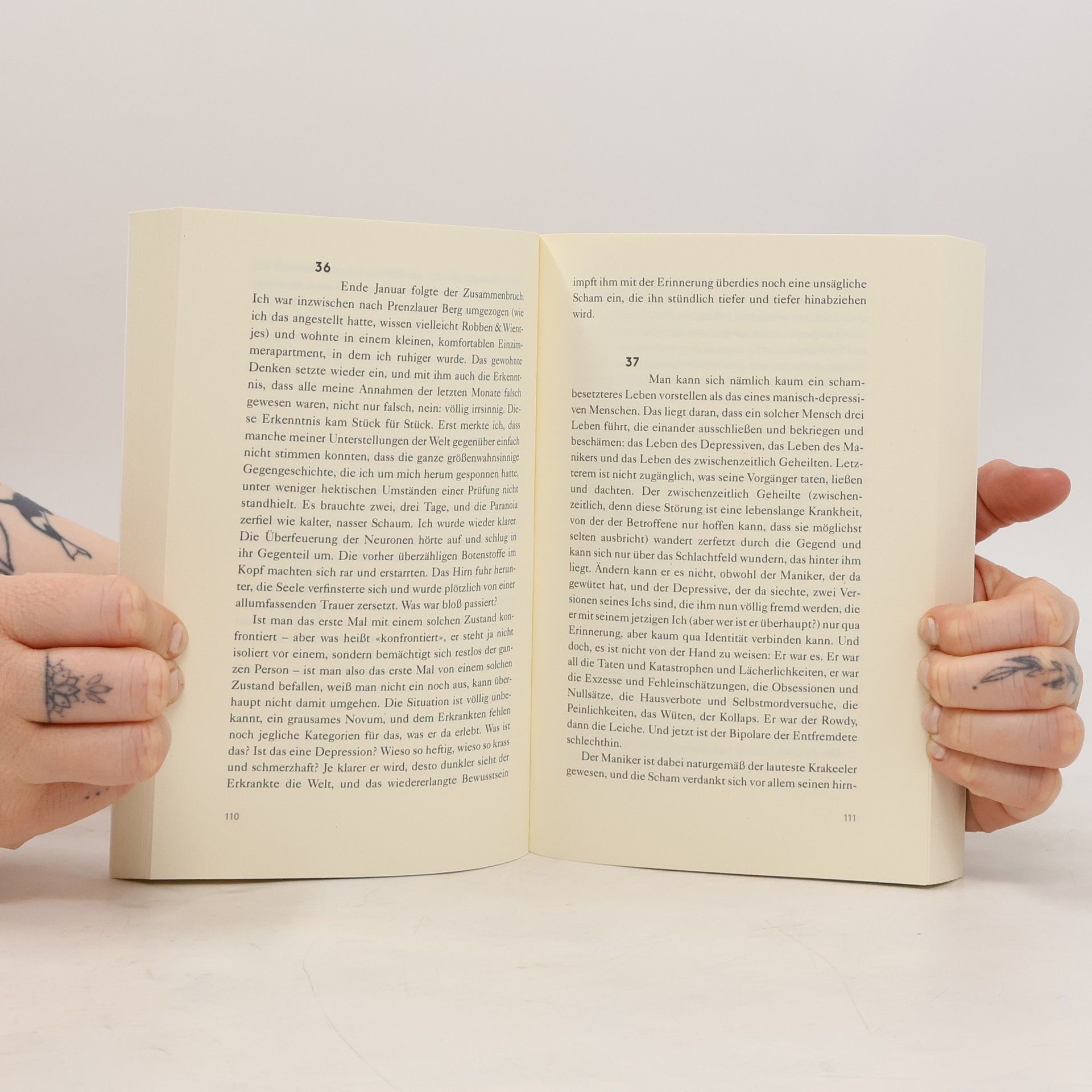 Bipolare Störung führt dazu, dass das Leben keine Kontinuität mehr hat. Die Krankheit zerstört die Vergangenheit und bedroht die Zukunft. Mit jeder manischen Episode wird das gewohnte Leben weiter erschüttert. Das Selbstbild verliert seine Stabilität, und man ist sich seiner selbst nicht mehr sicher. Gedanken, die sonst flüchtig sind, werden in der Manie zu impulsiven Handlungen. Jeder Mensch hat innere Abgründe, doch eine Manie ist eine vollständige Reise durch diese Dunkelheit, die das bekannte Selbstbild innerhalb kürzester Zeit ungültig macht. Man beginnt nicht bei null, sondern rutscht ins Negative, und nichts bleibt verlässlich. Der Autor leidet seit vielen Jahren an dieser Erkrankung und schildert schonungslos und sprachlich brillant seinen Umgang damit. Er berichtet von persönlichen Dramen und dem langsamen Weg zur Besserung, wodurch er einen außergewöhnlichen Einblick in die Gedankenwelt eines Erkrankten gewährt. Diese fesselnde Chronik eines zerrissenen Lebens ist ein autobiografisches Werk von höchster literarischer Kraft und stand auf der Shortlist für den Deutschen Buchpreis 2016, was sowohl Presse als auch Leser begeistert hat.