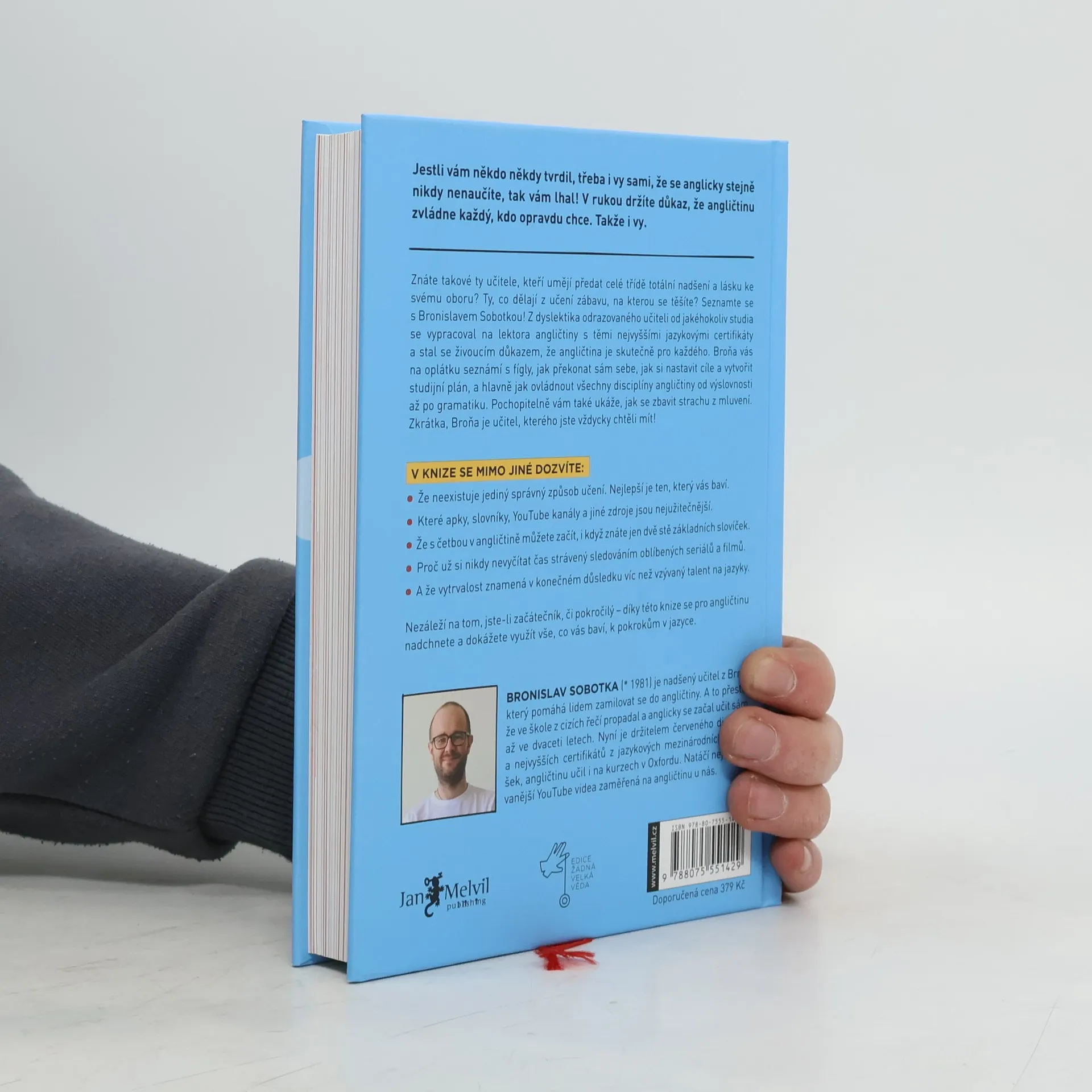 Hello my dear future readers! Jsem Broňa, nadšený učitel angličtiny z Brna, který pomáhá lidem zamilovat se do angličtiny a rád bych vám představil svoji novou knihu. Možná vás to překvapí, ale od malička jsem nesnášel školu. Asi proto, že mi vůbec nešla. Zvláště pak jazyky. Každý diktát za 5. Návrh na přestup do zvláštní školy. Dyslexie. Osm let němčiny a v hlavě prázdno. V 18 nastupuji jako dělník do fabriky a mám radost, že se už nemusím nic učit. End of the story. A víte co? Nakonec jsem vystudoval angličtinu na vysoké, s červeným diplomem, udělal si certifikát CPE a dal ho na Pass A, což je ta nejvyšší úroveň angličtiny, kterou v Cambridge měří. V létě jsem pak několik let po sobě učil angličtinu v Oxfordu a v Londýně jsem získal nejvyšší neuniverzitní globálně uznávanou kvalifikaci pro vyučující anglického jazyka DELTA. Učím jako externista na Masarykově univerzitě, školím učitele a mám největší YouTube kanál v ČR zaměřený na angličtinu, stejně jako nejstudovanější online kurz angličtiny u nás.