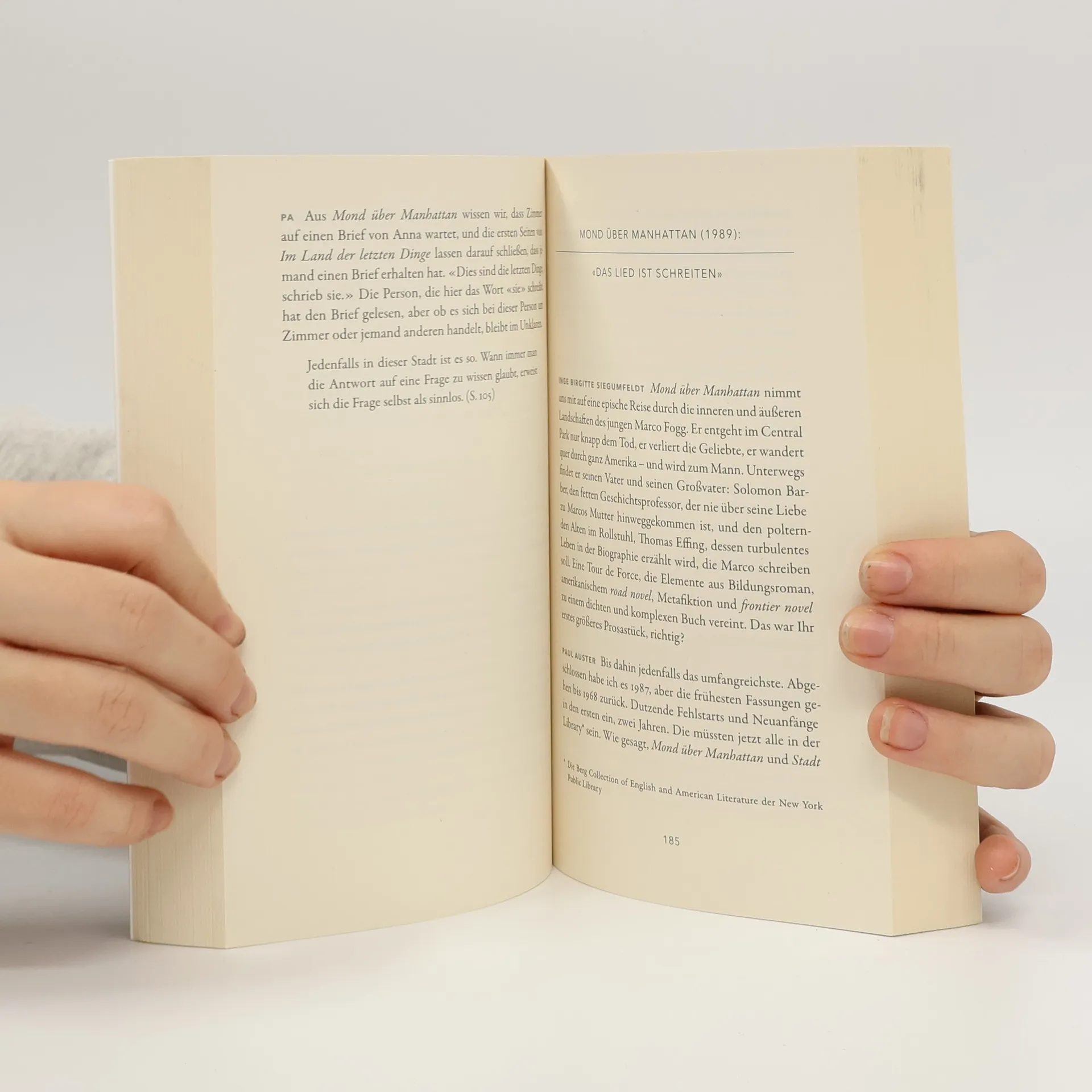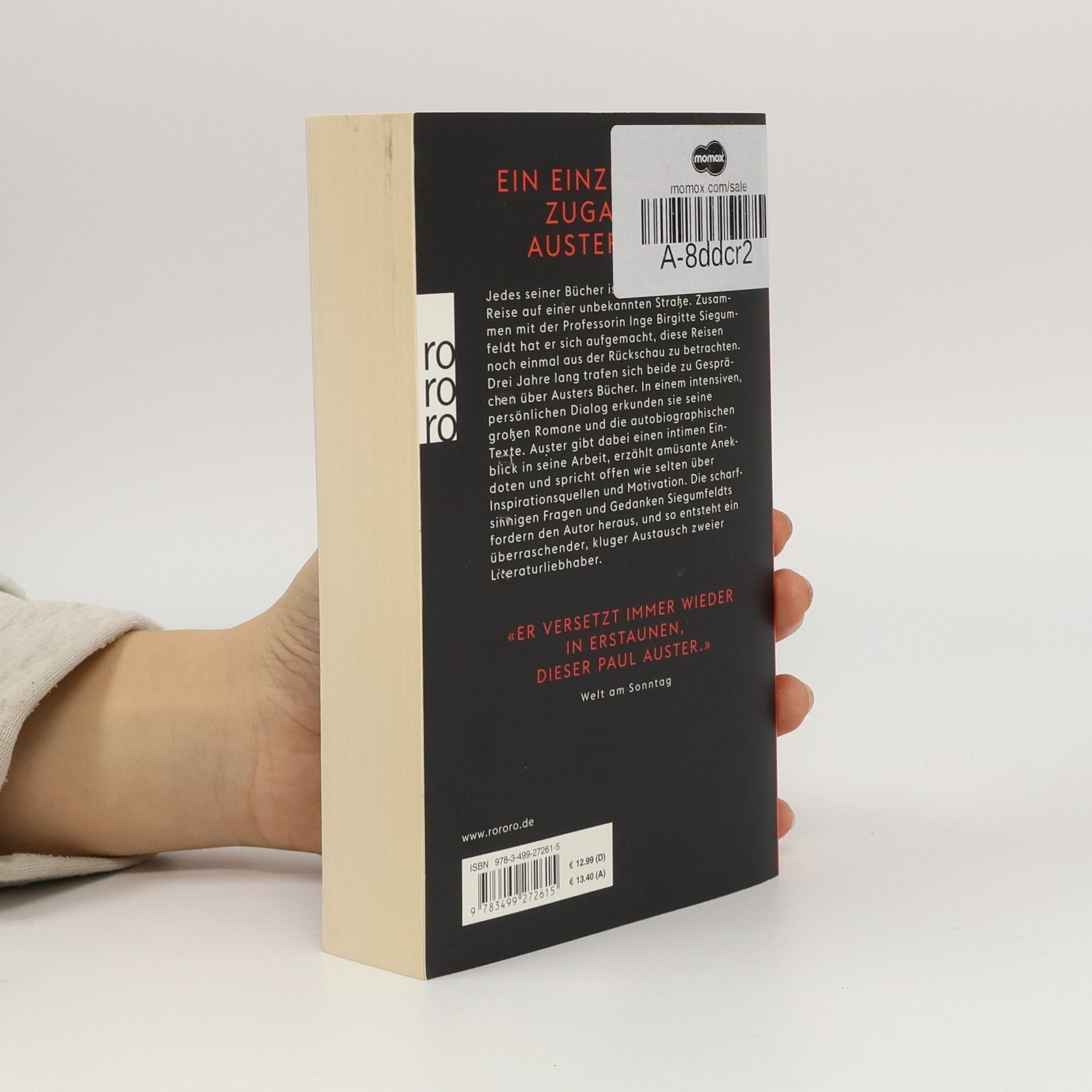Ein einzigartiger Zugang zu Austers Werk Jedes seiner Bücher ist für Paul Auster eine Reise auf einer unbekannten Straße. Zusammen mit der Professorin Inge Birgitte Siegumfeldt hat er sich aufgemacht, diese Reisen noch einmal aus der Rückschau zu betrachten. Drei Jahre lang trafen sich beide zu Gesprächen über Austers Bücher. In einem intensiven, persönlichen Dialog erkunden sie seine großen Romane und die autobiographischen Texte. Auster gibt dabei einen intimen Einblick in seine Arbeit, erzählt amüsante Anekdoten und spricht offen wie selten über Inspirationsquellen und Motivation. Die scharfsinnigen Fragen und Gedanken Siegumfeldts fordern den Autor heraus, und so entsteht ein überraschender, kluger Austausch zweier Literaturliebhaber.