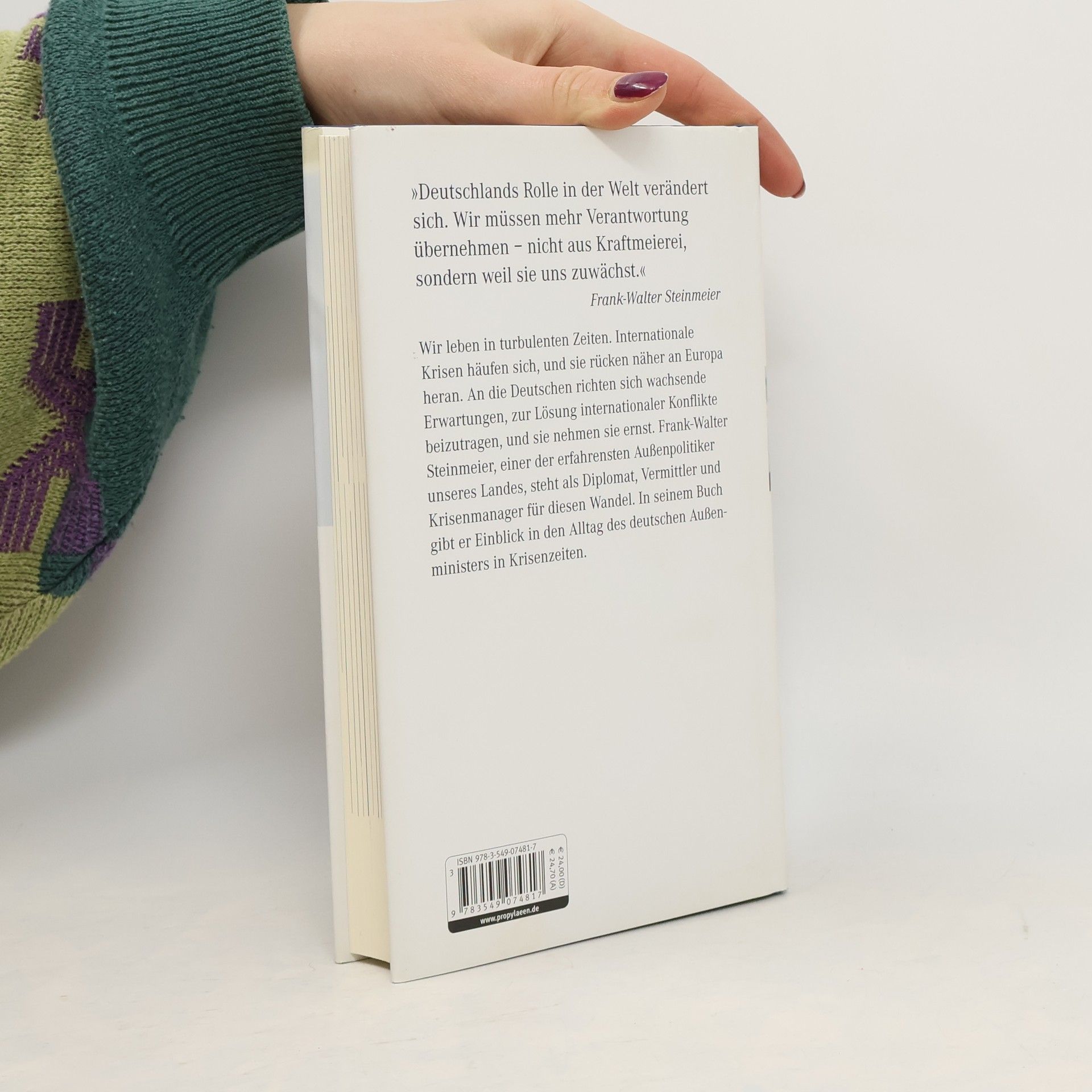 Wir leben in turbulenten Zeiten. Internationale Krisen häufen sich, und sie rücken näher an Europa heran. An die Deutschen richten sich wachsende Erwartungen, zur Lösung internationaler Konflikte beizutragen, und sie nehmen sie ernst. Frank-Walter Steinmeier, einer der erfahrensten Außenpolitiker unseres Landes, steht als Diplomat, Vermittler und Krisenmanager für diesen Wandel. In seinem Buch gibt er Einblick in den Alltag des deutschen Ausßenministers in Krisenzeiten.