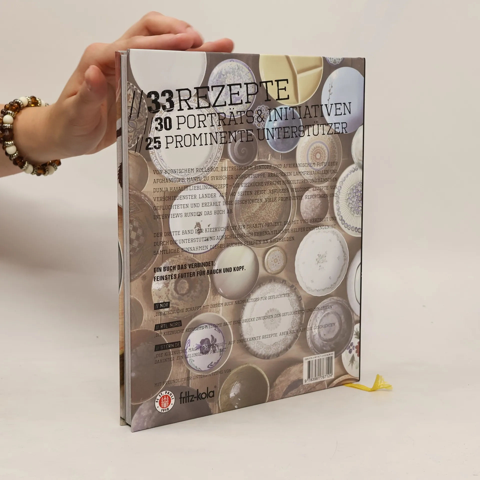 Von Bosnischem Rollbrot, eritreischem Eintopf und afrikanischem Fufu über afghanische Mantu zu syrischer Yoghurtsuppe, arabischen Lammfrikadellen und Dunja Hayalis Lieblingsrezept. Die Kiezküche vereint Esskulturen und Menschen verschiedenster Länder zugleich. Auf 140 Seiten zeigt die Kiezküche Refugees Welcome Rezepte von Geflüchteten und erzählt ihre Geschichten. Viele Prominente, Reportagen und Interviews runden das Buch ab. Der dritte Teil der Kiezküche-Serie ist ein Charity-Projekt und mit viel Herzblut und durch die Unterstützung ausschließlich ehrenamtlicher Helfer entstanden. Sämtliche Einnahmen dieses Buches fließen in Flüchtlingsprojekte. Ein Buch das verbindet. Feinstes Futter für Bauch und Kopf.
