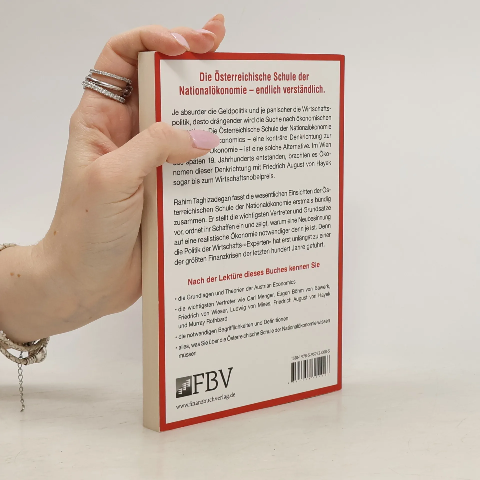 Die Österreichische Schule der Nationalökonomie – endlich verständlich. Je absurder die Geldpolitik und je panischer die Wirtschaftspolitik, desto drängender wird die Suche nach ökonomischen Alternativen. Die Österreichische Schule der Nationalökonomie oder Austrian Economics – eine konträre Denkrichtung zur Mainstream-Ökonomie – ist eine solche Alternative. Im Wien des späten 19. Jahrhunderts entstanden, brachten es Ökonomen dieser Denkrichtung mit Friedrich August von Hayek sogar bis zum Wirtschaftsnobelpreis. Rahim Taghizadegan fasst die wesentlichen Einsichten der Österreichischen Schule der Nationalökonomie erstmals bündig zusammen. Er stellt die wichtigsten Vertreter und Grundsätze vor, ordnet ihr Schaffen ein und zeigt, warum eine Neubesinnung auf eine realistische Ökonomie notwendiger denn je ist. Denn die Politik der Wirtschafts-»Experten« hat erst unlängst zu einer der größten Finanzkrisen der letzten hundert Jahre geführt. Nach der Lektüre dieses Buches kennen Sie - die Grundlagen und Theorien der Austrian Economics - die wichtigsten Vertreter wie Carl Menger, Eugen Böhm von Bawerk, Friedrich von Wieser, Ludwig von Mises, Friedrich August von Hayek und Murray Rothbard - die notwendigen Begrifflichkeiten und Definitionen - alles, was Sie über die Österreichische Schule der Nationalökonomie wissen müssen