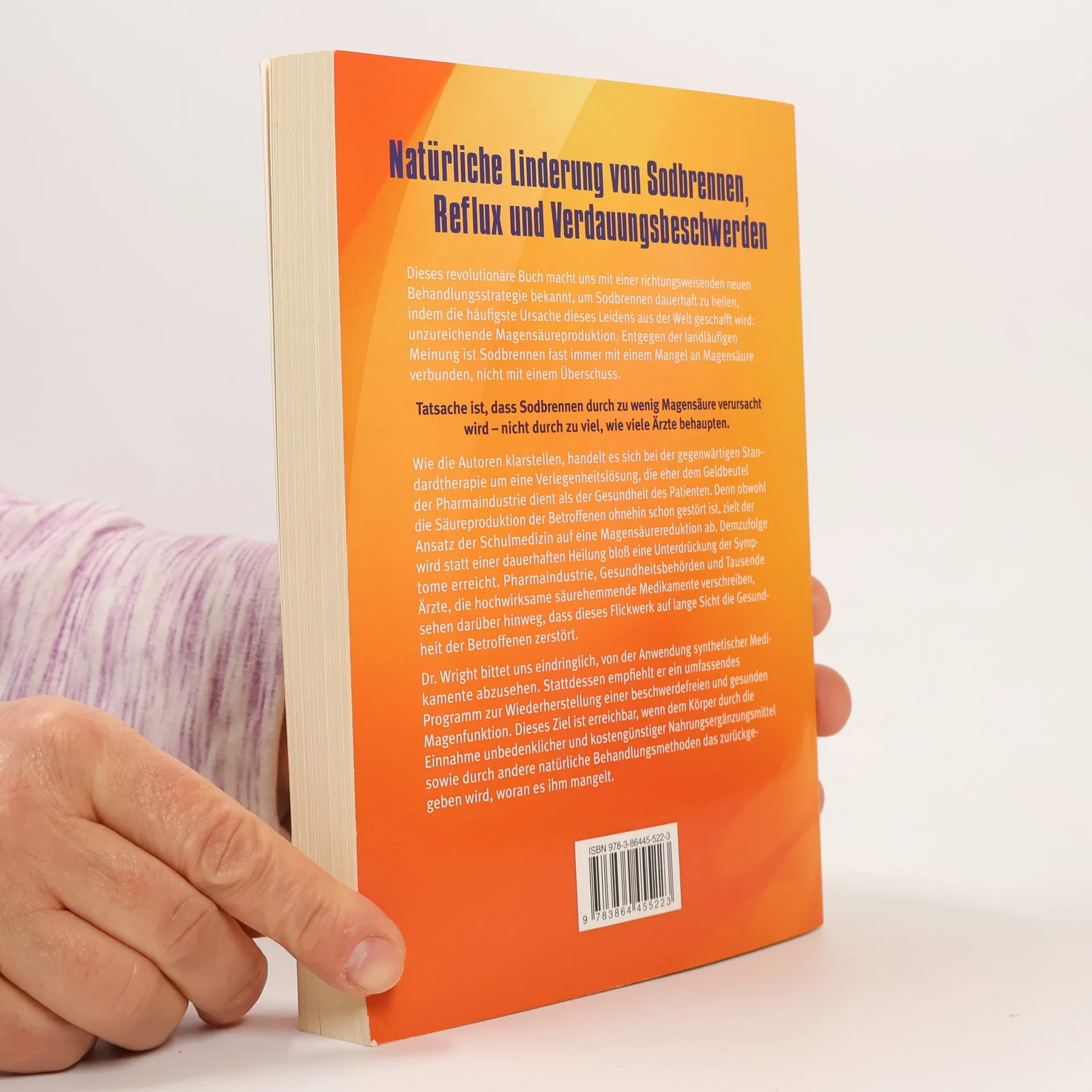 Dieses revolutionäre Buch macht uns mit einer richtungsweisenden neuen Behandlungsstrategie bekannt, um Sodbrennen dauerhaft zu heilen, indem die häufigste Ursache dieses Leidens aus der Welt geschafft wird: unzureichende Magensäureproduktion. Entgegen der landläufigen Meinung ist Sodbrennen fast immer mit einem Mangel an Magensäure verbunden, nicht mit einem Überschuss. Die Autoren verdeutlichen, dass es sich bei der gegenwärtigen Standardtherapie, die auf Magensäurereduktion abzielt, obwohl die Säureproduktion der Betroffenen ohnehin schon gestört ist, um eine Verlegenheitslösung handelt: Anstelle einer dauerhaften Heilung bewirkt sie nicht mehr als eine vorübergehende Unterdrückung der Symptome. Pharmaindustrie, Gesundheitsbehörden und tausende Ärzte, die hochwirksame säurehemmende Medikamente wie Prilosec, Prevacid, Tagamet, Zantac oder Pepcid verschreiben, sehen darüber hinweg, dass dieses Flickwerk auf lange Sicht unsere Gesundheit zerstört. Dr. Wright bittet uns eindringlich, von der Anwendung synthetischer Medikamente abzusehen. Stattdessen empfiehlt er ein umfassendes Programm zur Wiederherstellung einer beschwerdefreien und gesunden Magenfunktion. Dieses Ziel ist erreichbar, wenn dem Körper durch die Einnahme unbedenklicher und kostengünstiger Ersatzstoffe sowie durch andere natürliche Behandlungsmethoden das zurückgegeben wird, woran es ihm mangelt.