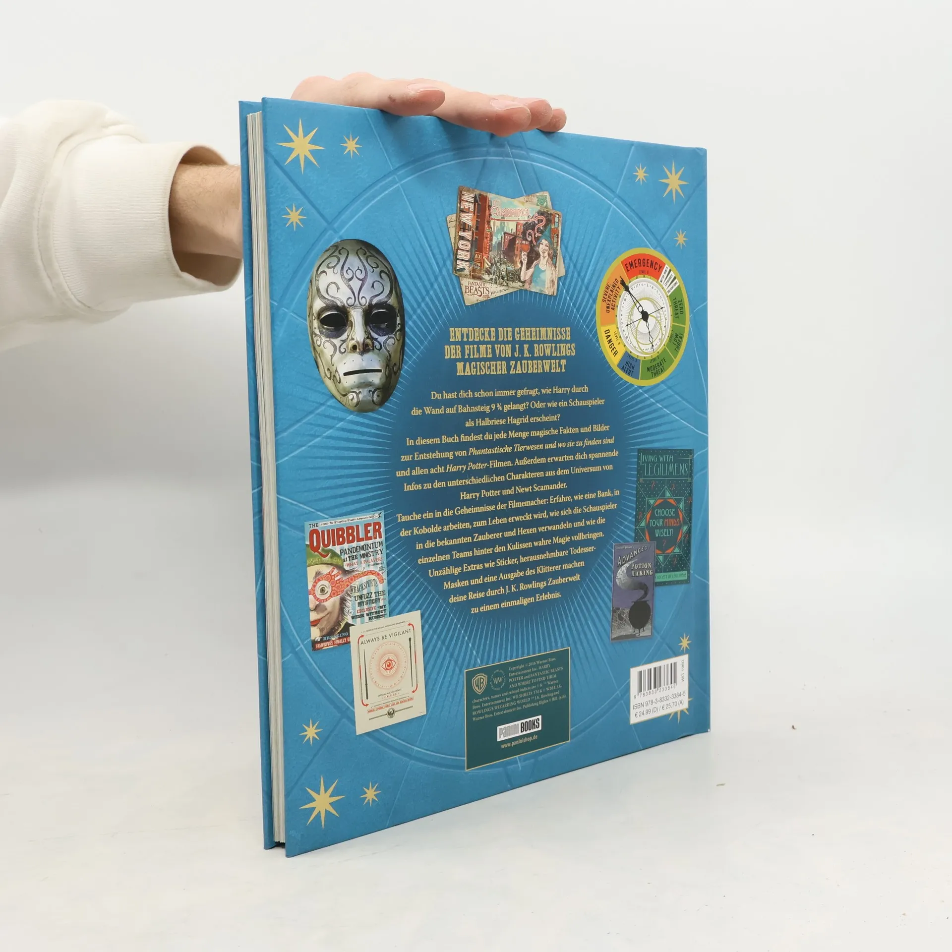 ENTDECKE DIE GEHEIMNISSE DER FILME VON J. K. ROWLINGS MAGISCHER ZAUBERWELT Du hast dich schon immer gefragt, wie Harry durch die Wand auf Bahnsteig 9 ¾ gelangt? Oder wie ein Schauspieler als Halbriese Hagrid erscheint? In diesem Buch findest du jede Menge magische Fakten und Bilder zur Entstehung von Phantastische Tierwesen und wo sie zu finden sind und allen acht Harry Potter-Filmen. Außerdem erwarten dich spannende Infos zu den unterschiedlichen Charakteren aus dem Universum von Harry Potter und Newt Scamander. Tauche ein in die Geheimnisse der Filmemacher: Erfahre, wie eine Bank, in der Kobolde arbeiten, zum Leben erweckt wird, wie sich die Schauspieler in die bekannten Zauberer und Hexen verwandeln und wie die einzelnen Teams hinter den Kulissen wahre Magie vollbringen. Unzählige Extras wie Sticker, herausnehmbare Todesser- Masken und eine Ausgabe des Klitterer machen deine Reise durch J. K. Rowlings Zauberwelt zu einem einmaligen Erlebnis.