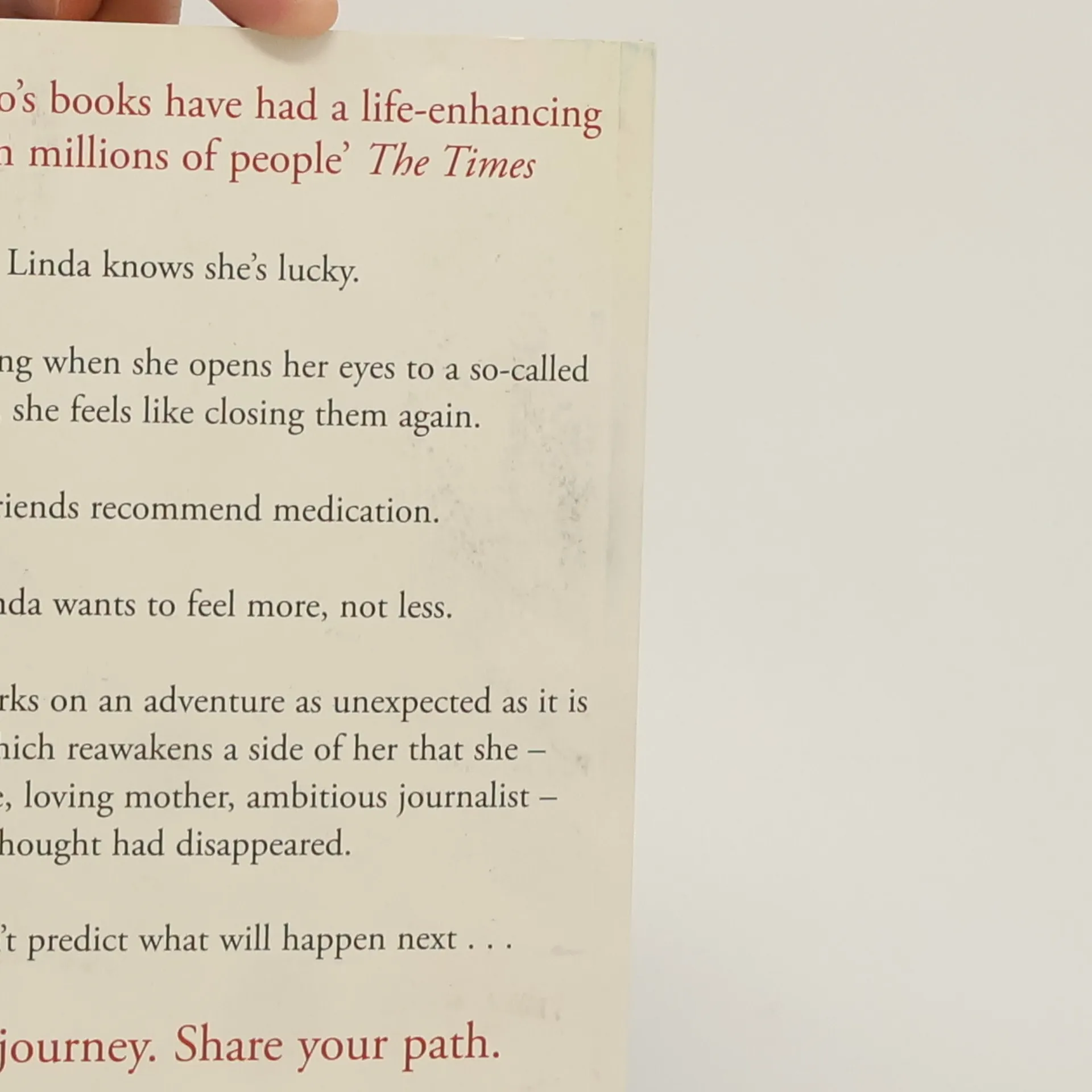 The thought-provoking new novel from the international bestselling author whose words change lives. Linda knows she's lucky. Yet every morning when she opens her eyes to a so-called new day, she feels like closing them again. Her friends recommend medication. But Linda wants to feel more, not less. And so she embarks on an adventure as unexpected as it is daring, and which reawakens a side of her that she - respectable wife, loving mother, ambitious journalist - thought had disappeared. Even she can't predict what will happen next...