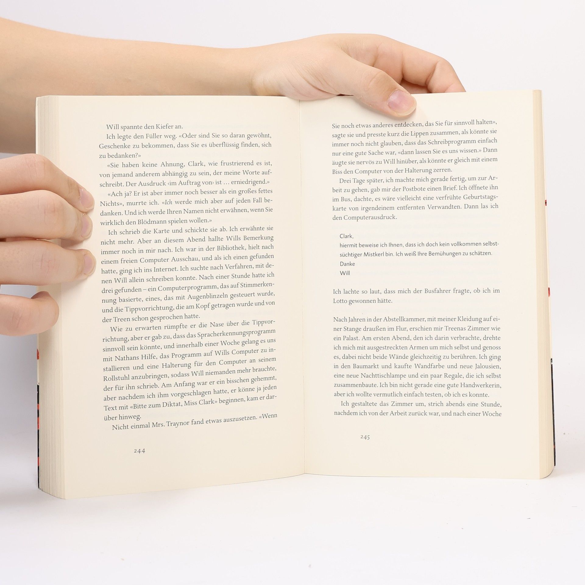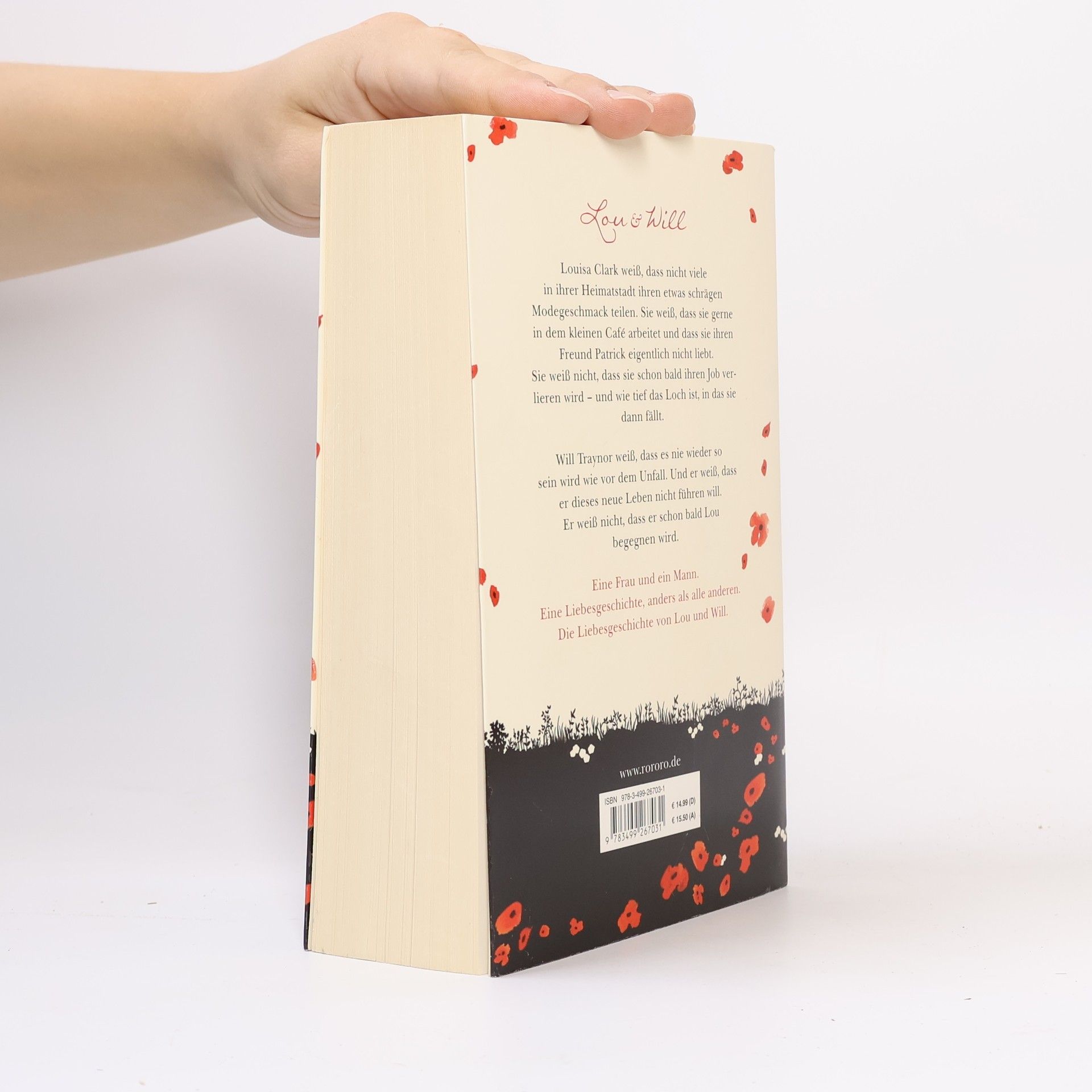 Lou & Will. Louisa Clark weiß, dass nicht viele in ihrer Heimatstadt ihren etwas schrägen Modegeschmack teilen. Sie weiß, dass sie gerne in dem kleinen Café arbeitet und dass sie ihren Freund Patrick eigentlich nicht liebt. Sie weiß nicht, dass sie schon bald ihren Job verlieren wird – und wie tief das Loch ist, in das sie dann fällt. Will Traynor weiß, dass es nie wieder so sein wird wie vor dem Unfall. Und er weiß, dass er dieses neue Leben nicht führen will. Er weiß nicht, dass er schon bald Lou begegnen wird. Eine Frau und ein Mann. Eine Liebesgeschichte, anders als alle anderen. Die Liebesgeschichte von Lou und Will.