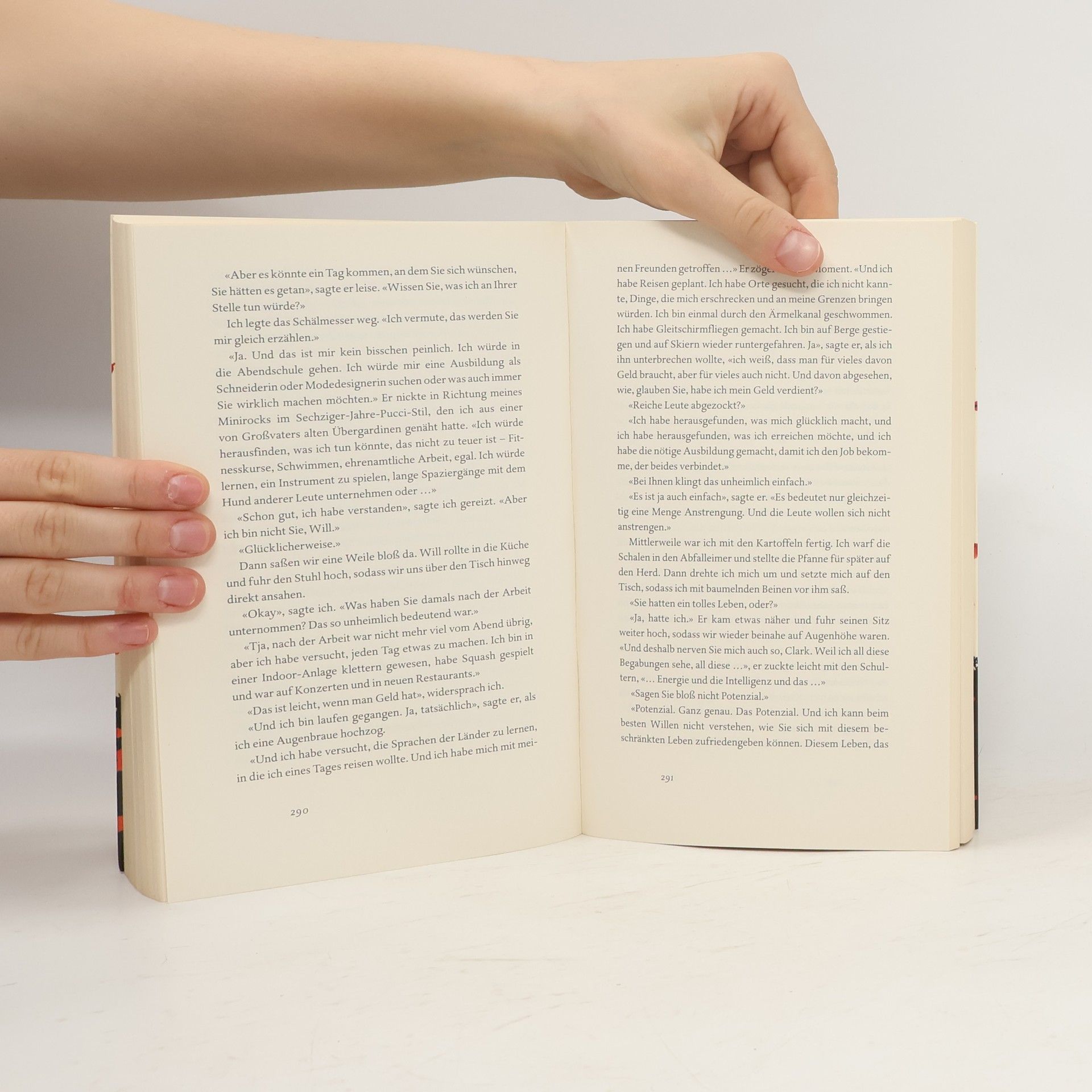 Lou & Will. Louisa Clark weiß, dass nicht viele in ihrer Heimatstadt ihren etwas schrägen Modegeschmack teilen. Sie weiß, dass sie gerne in dem kleinen Café arbeitet und dass sie ihren Freund Patrick eigentlich nicht liebt. Sie weiß nicht, dass sie schon bald ihren Job verlieren wird – und wie tief das Loch ist, in das sie dann fällt. Will Traynor weiß, dass es nie wieder so sein wird wie vor dem Unfall. Und er weiß, dass er dieses neue Leben nicht führen will. Er weiß nicht, dass er schon bald Lou begegnen wird. Eine Frau und ein Mann. Eine Liebesgeschichte, anders als alle anderen. Die Liebesgeschichte von Lou und Will.