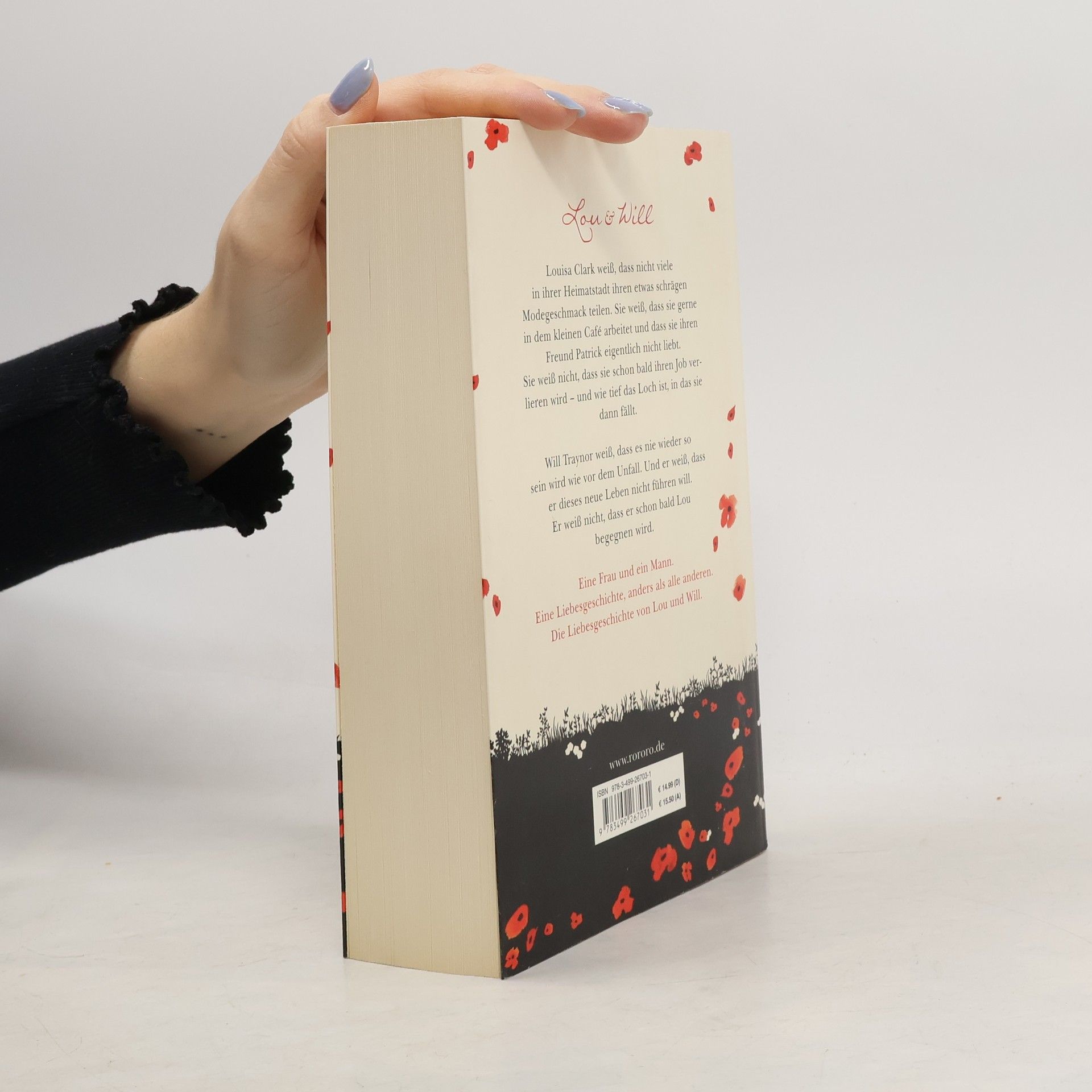 Lou & Will. Louisa Clark weiß, dass nicht viele in ihrer Heimatstadt ihren etwas schrägen Modegeschmack teilen. Sie weiß, dass sie gerne in dem kleinen Café arbeitet und dass sie ihren Freund Patrick eigentlich nicht liebt. Sie weiß nicht, dass sie schon bald ihren Job verlieren wird – und wie tief das Loch ist, in das sie dann fällt. Will Traynor weiß, dass es nie wieder so sein wird wie vor dem Unfall. Und er weiß, dass er dieses neue Leben nicht führen will. Er weiß nicht, dass er schon bald Lou begegnen wird. Eine Frau und ein Mann. Eine Liebesgeschichte, anders als alle anderen. Die Liebesgeschichte von Lou und Will.