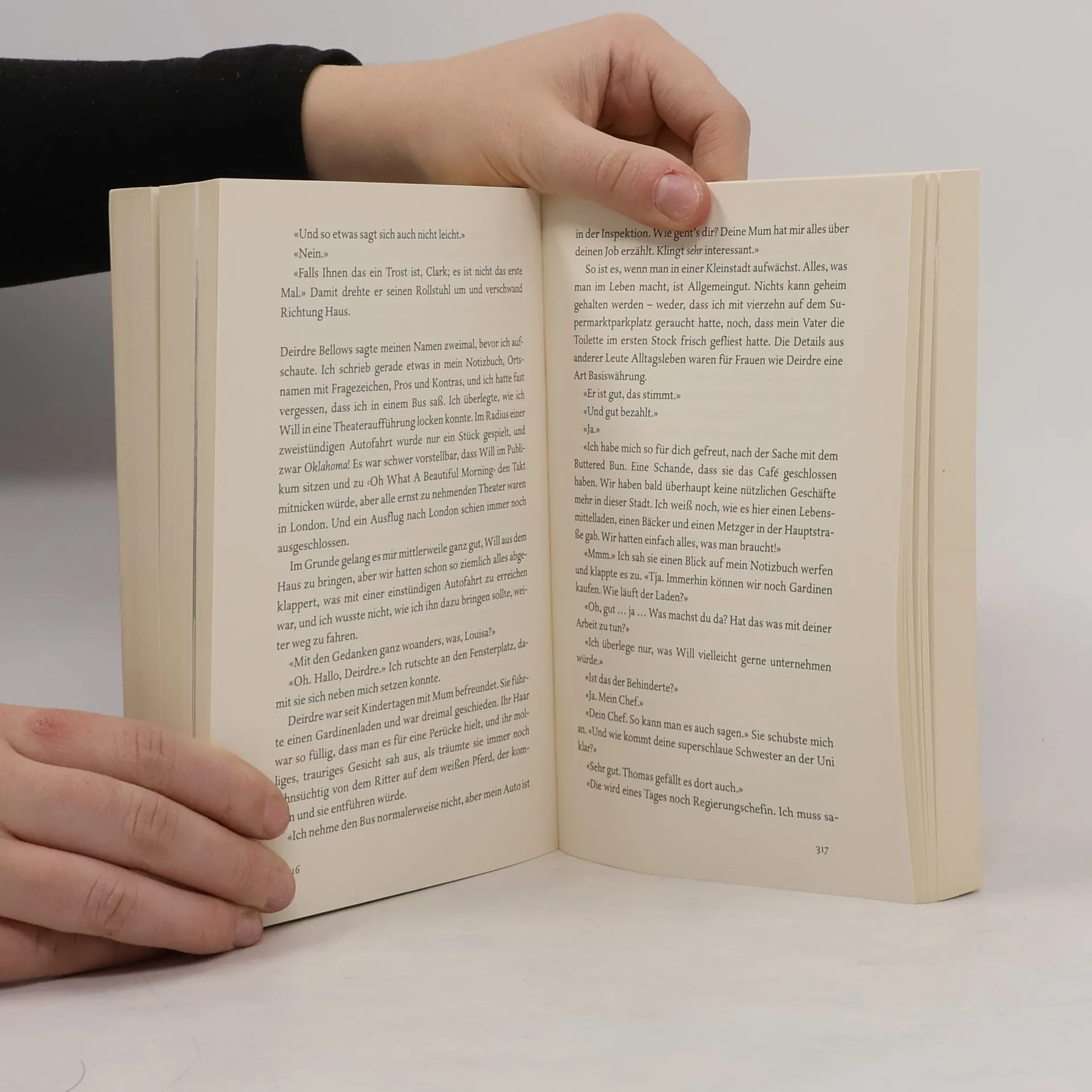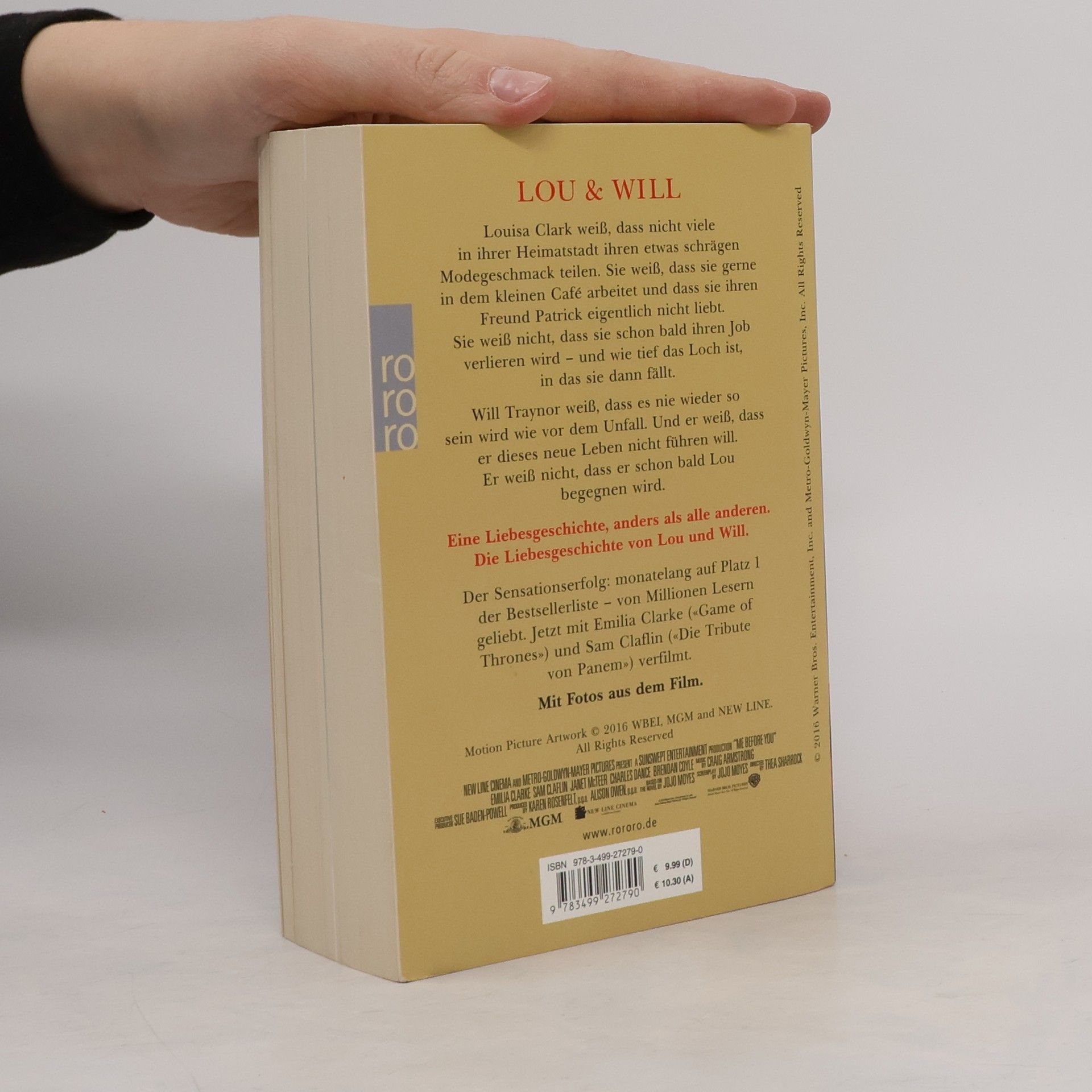 Louisa Clark weiß, dass nicht viele in ihrer Heimatstadt ihren etwas schrägen Modegeschmack teilen. Sie weiß, dass sie gerne in dem kleinen Café arbeitet und dass sie ihren Freund Patrick eigentlich nicht liebt. Sie weiß nicht, dass sie schon bald ihren Job verlieren wird – und wie tief das Loch ist, in das sie dann fällt. Will Traynor weiß, dass es nie wieder so sein wird wie vor dem Unfall. Und er weiß, dass er dieses neue Leben nicht führen will. Er weiß nicht, dass er schon bald Lou begegnen wird. Eine Liebesgeschichte, anders als alle anderen. Die Liebesgeschichte von Lou und Will.