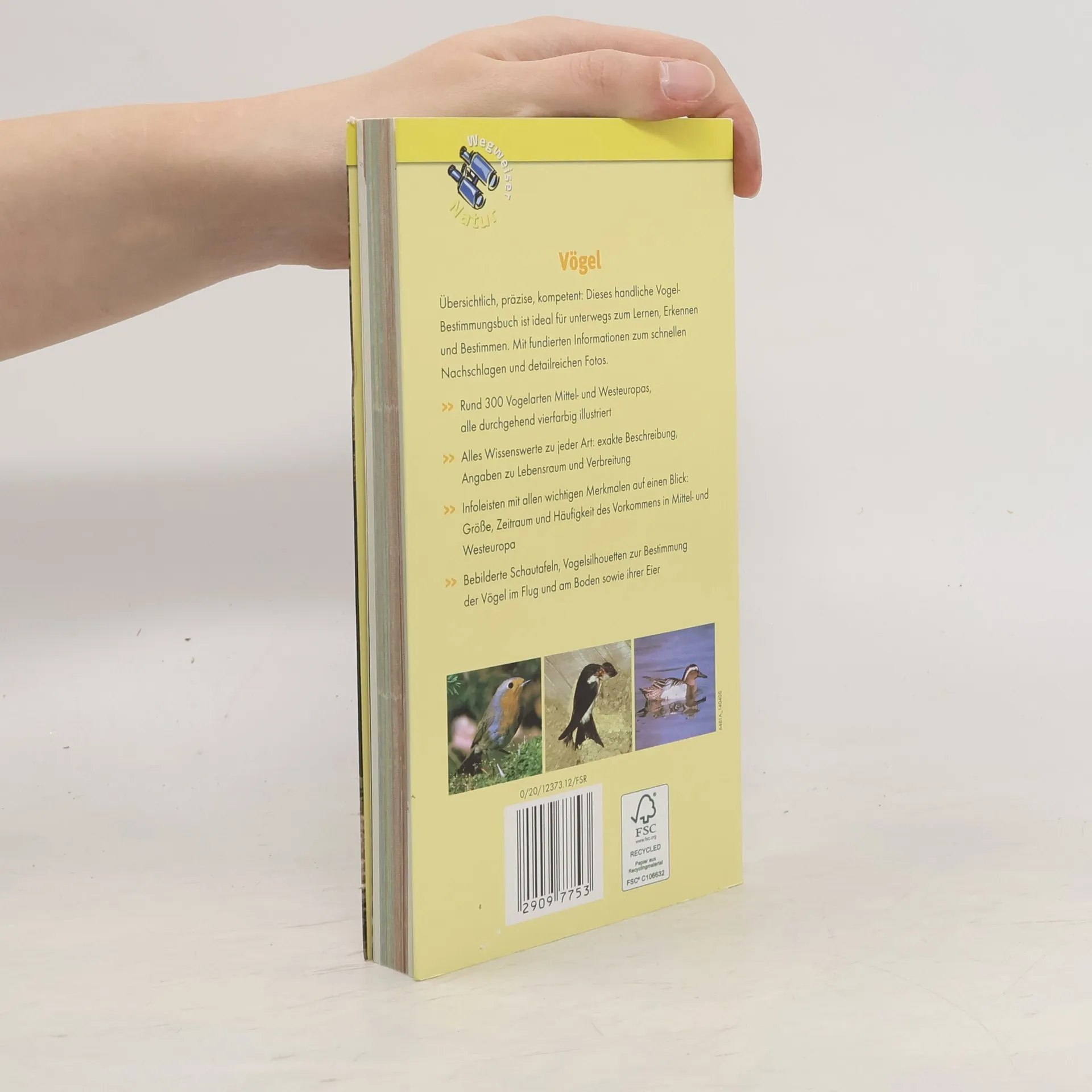 300 Vogelarten auf einen Blick - Alles Wissenswerte zu rund 300 Vogelarten Mittel- und Westeuropas: exakte Beschreibung und Angaben zu Lebensraum, Häufigkeit und Verbreitung - Extra: mit zahlreichen Vogelsilhouetten und farbig illustrierten Schautafeln zur Bestimmung der Vögel im Flug und ihrer Eier - Praktisches Pocket-Format, ideal auch zum Mitnehmen Übersichtlich, präzise, kompetent! Dieses handliche Vogel-Bestimmungsbuch ist ideal für unterwegs zum Lernen, Erkennen und Bestimmen. Rund 300 Vogelarten Mittel- und Westeuropas werden mit brillantem Farbfoto vorgestellt. Erfahren Sie mit der exakten Beschreibung, Angaben zu Lebensraum und Verbreitung alles Wissenswerte zu jeder Art. Mit den zahlreichen Infoleisten finden Sie alle wichtigen Merkmale auf einen Blick: Größe, Zeitraum und Häufigkeit des Vorkommens in Mittel- und Westeuropa. Abgerundet wird der Band mit bebilderten Schautafeln von Vogelsilhouetten zur Bestimmung der Vögel im Flug und am Boden sowie ihren Eiern. Der kompetente Naturführer im Pocket-Format lässt sich bequem überall hin mitnehmen. Die hochwertige Ausstattung mit den praktischen Umschlagklappen sorgt für vergnüglichen Umgang beim Erkennen und Bestimmen der heimischen Vogelwelt.