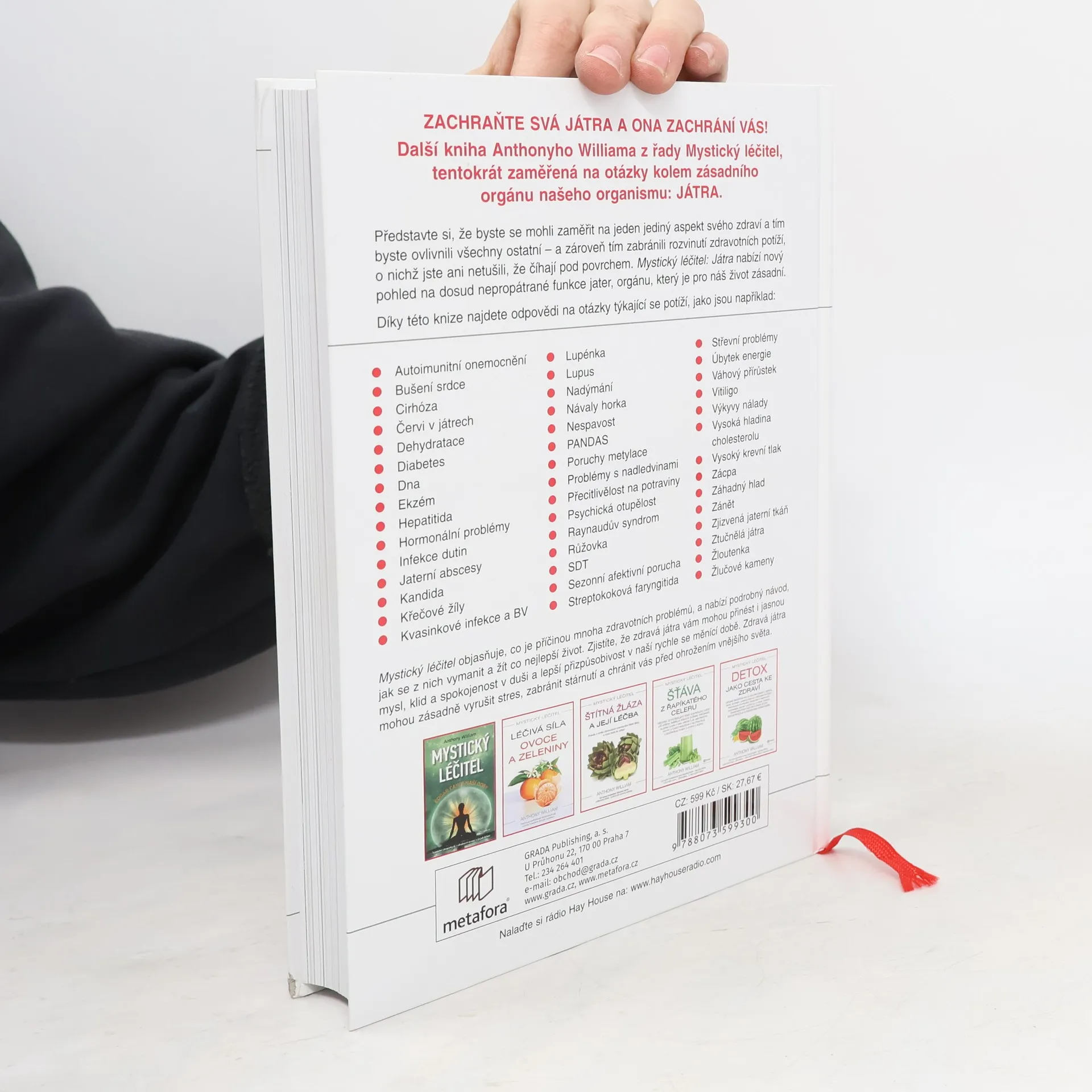Představte si, že byste se mohli zaměřit na jeden jediný aspekt vašeho zdraví a tím byste ovlivnili všechny ostatní – a zároveň tím i preventivně zabránili rozvinutí zdravotních potíží, o nichž jste ani netušili, že číhají pod povrchem. Kniha Mystický léčitel JÁTRA nabízí odpovědi, které byste měli znát. Anthony William se čtenáři nadšeně sdílí naprosto nový pohled na dosud nepropátrané funkce jater, orgánu, který je pro náš život zásadní. Mystický léčitel objasňuje, co je příčinou mnoha zdravotních problémů, a nabízí podrobný návod, jak se z nich vymanit a žít co nejlepší život. Zjistíte, že zdravá játra vám mohou přinést i jasnou mysl, klid a spokojenost a lepší přizpůsobivost v dnešní rychle se měnící době. A díky nim můžete dosáhnout i toho, že budete dobře spát, mít vyrovnanou hladinu krevního cukru, nižší krevní tlak i hmotnost, budete vypadat mladší a hlavně se tak i cítit. Zdravá játra mohou zásadně vyrušit stres, zabránit stárnutí a chránit vás před ohrožením vnějšího světa – jen pokud jim dopřejete tu správnou péči.