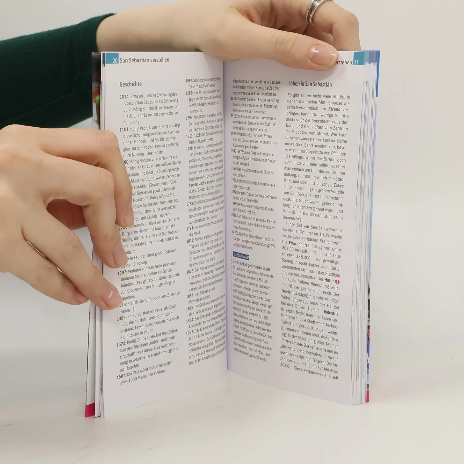 Die baskischen Nachbarstädte San Sebastián und Bilbao könnten unterschiedlicher kaum sein: Bilbao, einst eine Industriestadt, hat sich zur pulsierenden Kulturmetropole mit dem Guggenheim-Museum entwickelt, während San Sebastián mit seinem mondänen Seebad-Charme an der Strandbucht La Concha begeistert. Abends vereint jedoch ein atmosphärisches Altstadtviertel beide Städte, wo zahlreiche Bars mit kunstvoll angerichteten Pintxos locken. Dieser Stadtführer ist der ideale Begleiter, um die vielfältigen Facetten der beiden nordspanischen Städte zu entdecken. Er stellt die wichtigsten Sehenswürdigkeiten und Museen sowie weniger bekannte Attraktionen und Viertel ausführlich vor. Die faszinierende Architektur umfasst mittelalterliche Altstadthäuser, elegante Bäderarchitektur und moderne Bauwerke. Abwechslungsreiche Stadtspaziergänge, Erlebnisvorschläge und Ausflüge nach Getxo und Monte Igeldo sind enthalten. Shoppingtipps reichen von traditionellen Märkten bis zu Kunsthandwerksgeschäften. Zudem werden die besten Lokale und die baskische Küche vorgestellt. Tipps für das Nachtleben, Informationen zu baskischen Trendsportarten sowie ausgewählte Unterkünfte runden das Angebot ab. Praktische Infos zu Anreise, Preisen und Stadtverkehr sowie Hintergrundartikel zur Geschichte und Mentalität der Bewohner sind ebenfalls enthalten. Eine kleine Sprachhilfe für Spanisch und Baskisch sowie eine kostenlose Web-App mit Stadtplänen und Routenführungen