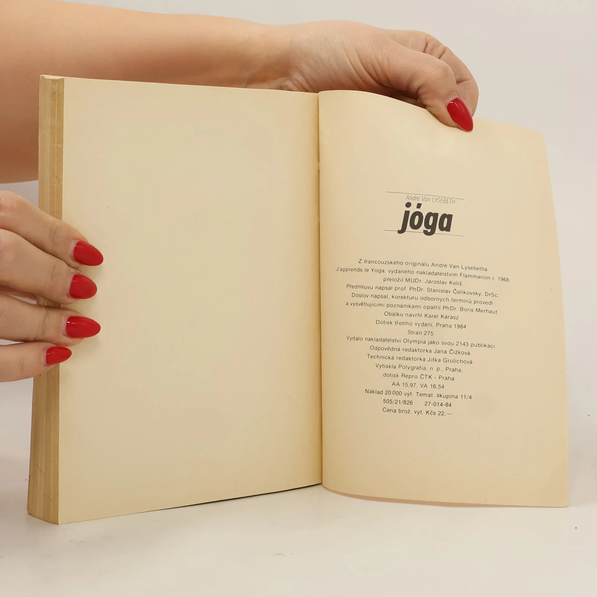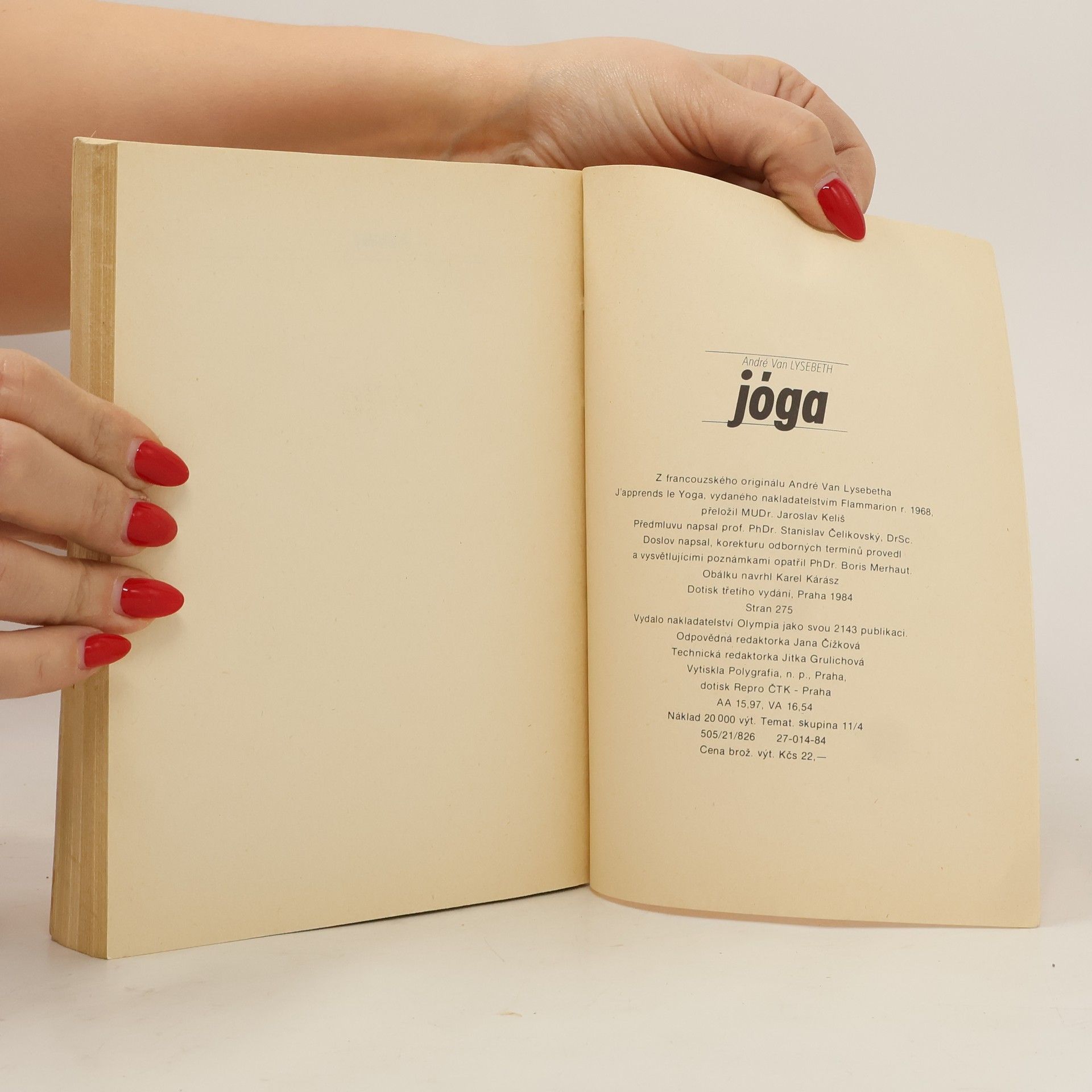První kniha o tom, jak cvičit jógu v ČSSR. Své znalosti Lysebeth získal v ášrámech swámího Šivánandy Sarasvatí v Rišikéši, Dhirendra Brahmachari v Dillí aj. André Van Lysebeth založil v Bruselu Institut jógy, kde vedl a vyučoval budoucí evropské instruktory jógy. Text seznamoval s tradicícvičení a se základní sestavou, kterou je možno cvičit. Cvičenci na fotografiích v knihách Jóga a Cvičíme jógu (nakladatelství Olympia) jsou manželé André a Denise Lysebethovi.