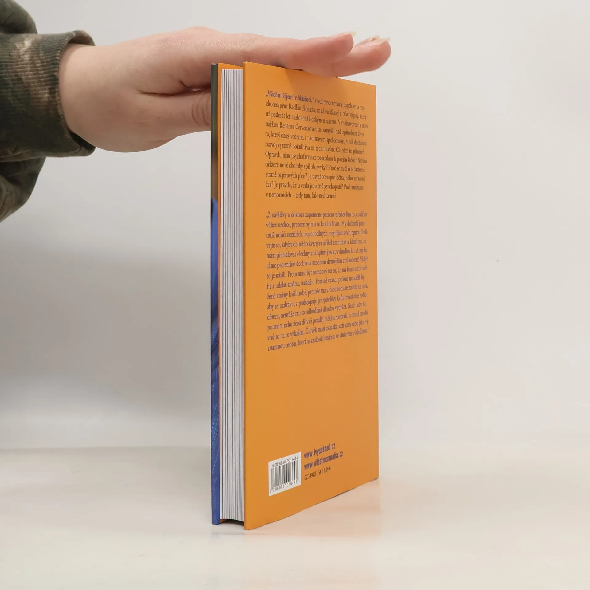 „Všichni žijem’ v blázinci,“ tvrdí renomovaný psychiatr a psychoterapeut Radkin Honzák, muž vzdělaný a také vtipný, který už padesát let naslouchá lidským strastem. V rozhovorech s novinářkou Renatou Červenkovou se zamýšlí nad způsobem života, který dnes vedeme, i nad stavem společnosti, v níž duchovní rozvoj výrazně pokulhává za technickým. Co nám to přinese?
