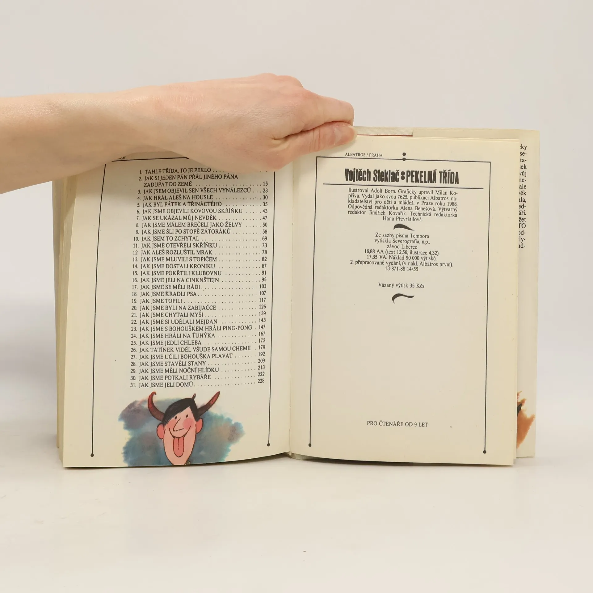 Veselé školní i mimoškolní historky oblíbené Boříkovy party z Holešovic. Osvědčené čtení plné legrace pro kluky i holky v novém, upraveném vydání. Pekelná třída - to je parta, se kterou jste se seznámili již ve třech knížkách boříkovských lapálií. Jistě si knížku rádi přečtete i kvůli půvabným barevným ilustracím Adolfa Borna. Dozvíte se v ní, jak vnímají září, jak si celý školní rok zpestřují nejrůznějšími vylomeninami, co všechno je láká ve Stromovce, jak se potýkají se Zátoráky, jak si udělali mejdan, jak se vypořádávají se šplhounem Bohouškem, jak doma válčí s rodiči. Není divu, že jejich nebohá paní třídní učitelka, něžně přezdívaná Drábinka, se často chytá za hlavu a volá: "Tahle třída, to je peklo!"