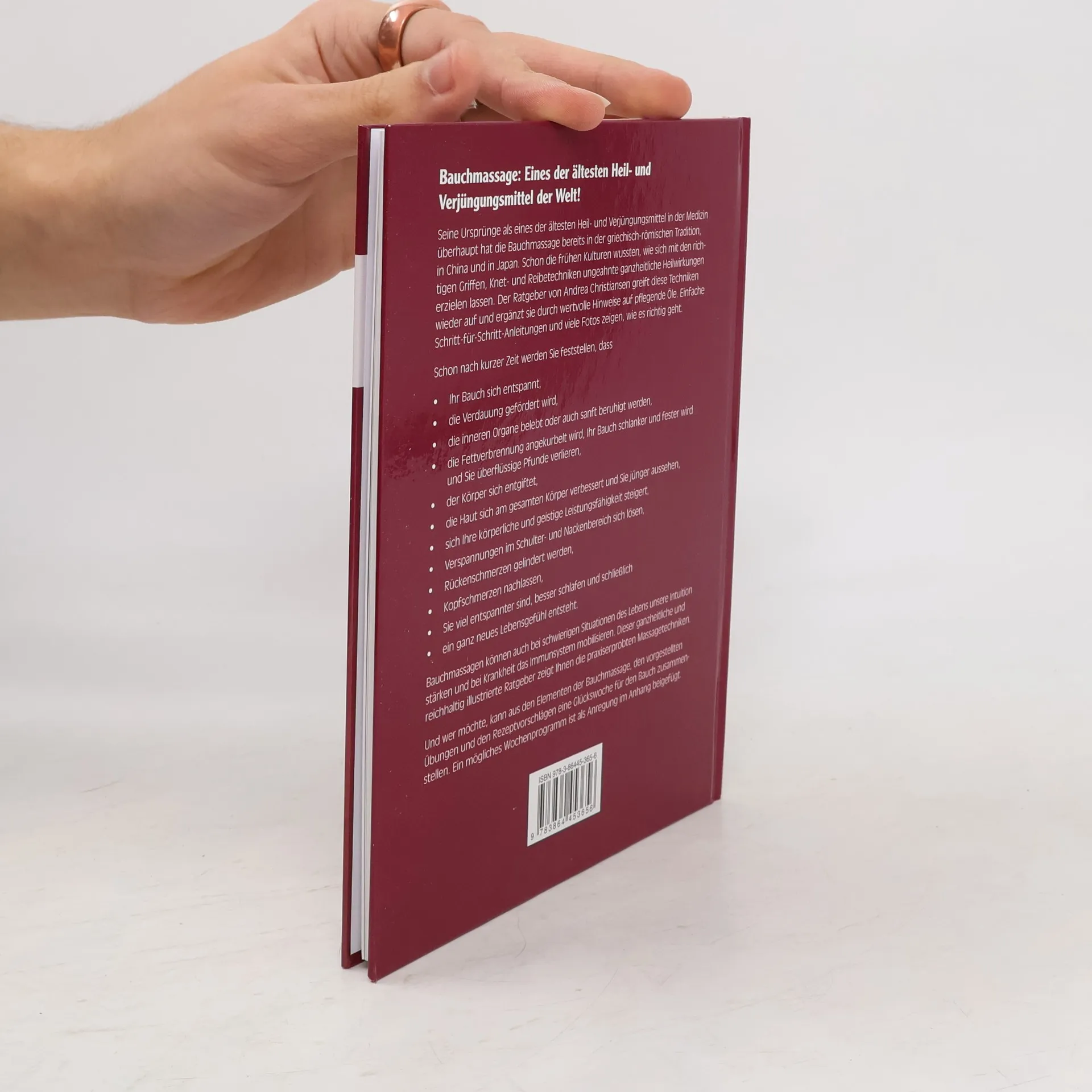 Bauchmassage ist eines der ältesten Heil- und Verjüngungsmittel der Welt, mit Ursprüngen in der griechisch-römischen Tradition sowie in China und Japan. Frühere Kulturen erkannten die ganzheitlichen Heilwirkungen, die durch spezifische Griffe, Knet- und Reibetechniken erzielt werden können. Der Ratgeber von Andrea Christiansen beleuchtet diese Techniken und ergänzt sie mit wertvollen Hinweisen zu pflegenden Ölen. Mit einfachen Schritt-für-Schritt-Anleitungen und zahlreichen Fotos wird gezeigt, wie die Bauchmassage richtig angewendet wird. Bereits nach kurzer Zeit werden positive Effekte spürbar: Der Bauch entspannt sich, die Verdauung wird gefördert, innere Organe werden belebt oder beruhigt, die Fettverbrennung angeregt, und der Bauch wird schlanker und fester. Zudem wird der Körper entgiftet, die Haut verbessert sich, und das allgemeine Wohlbefinden steigt. Verspannungen im Schulter- und Nackenbereich lösen sich, Rückenschmerzen und Kopfschmerzen nehmen ab, und die Schlafqualität verbessert sich. Bauchmassagen können auch in schwierigen Lebenssituationen die Intuition stärken und das Immunsystem mobilisieren. Der Ratgeber bietet praxiserprobte Massagetechniken und Anregungen für eine individuelle Glückswoche für den Bauch, einschließlich eines möglichen Wochenprogramms im Anhang.